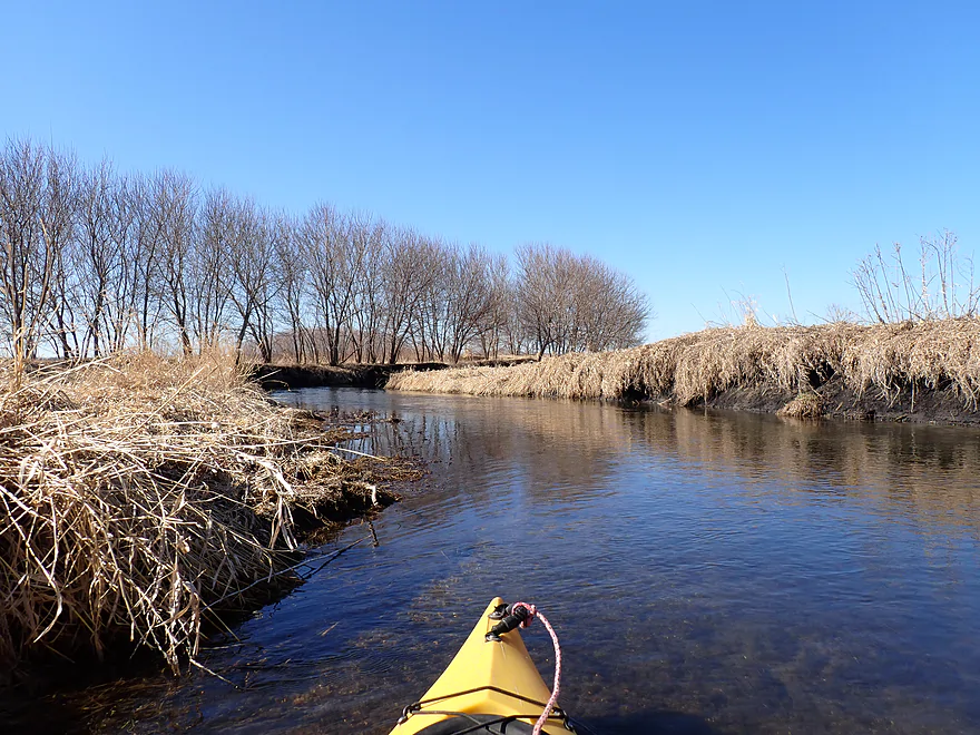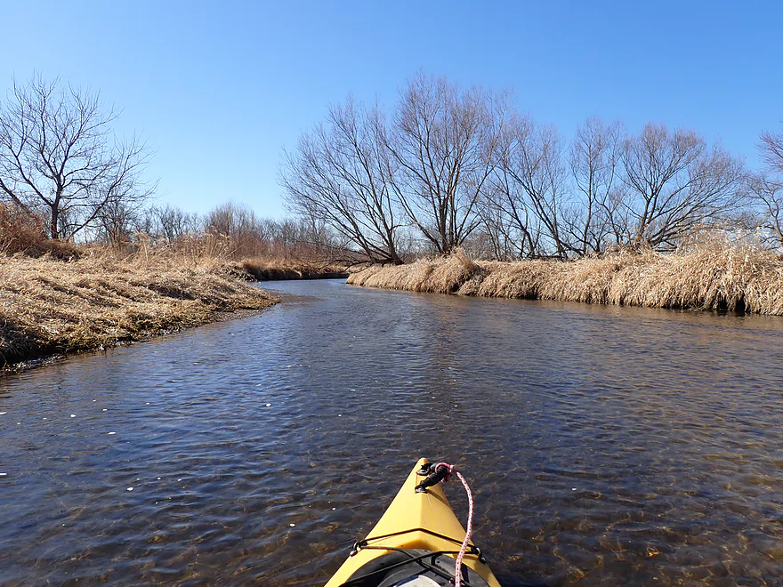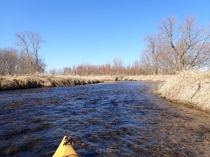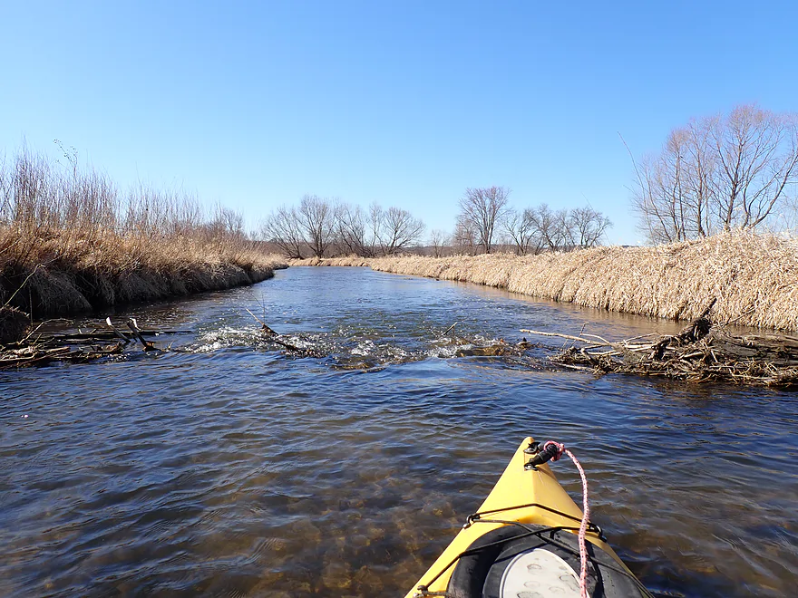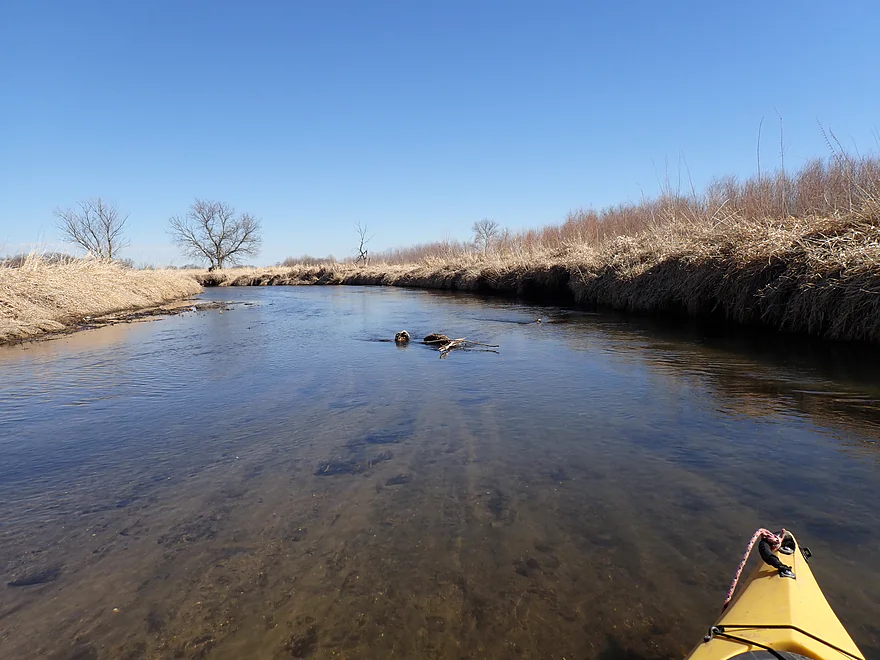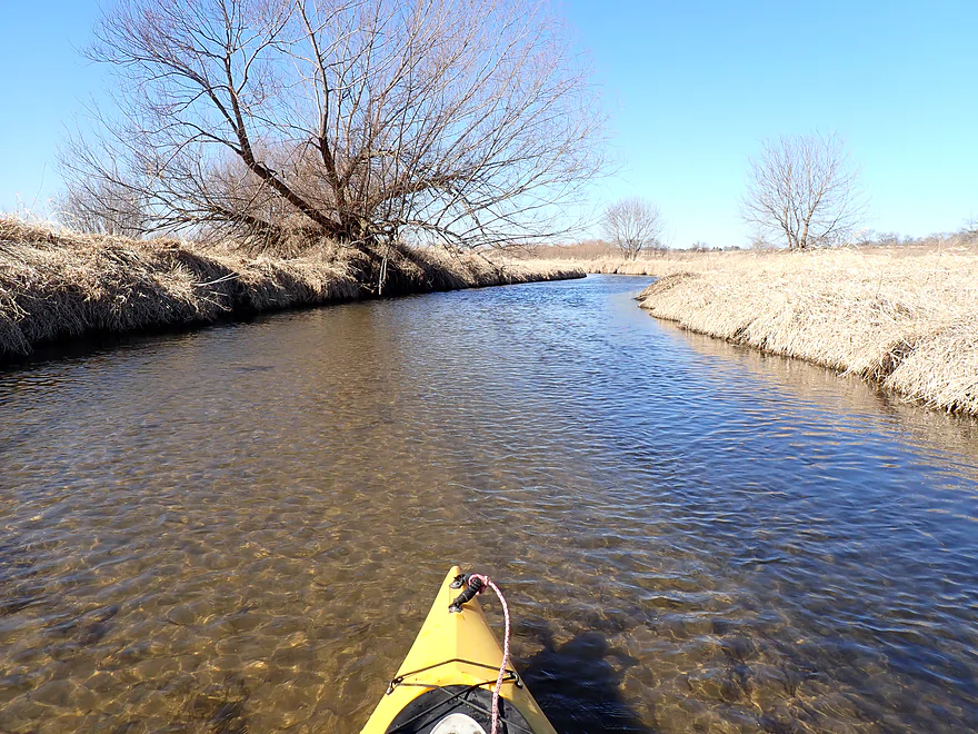 Current: Current was average. The first half features a few micro-riffles. In the second half of the trip the creek grows significantly and slows down.
