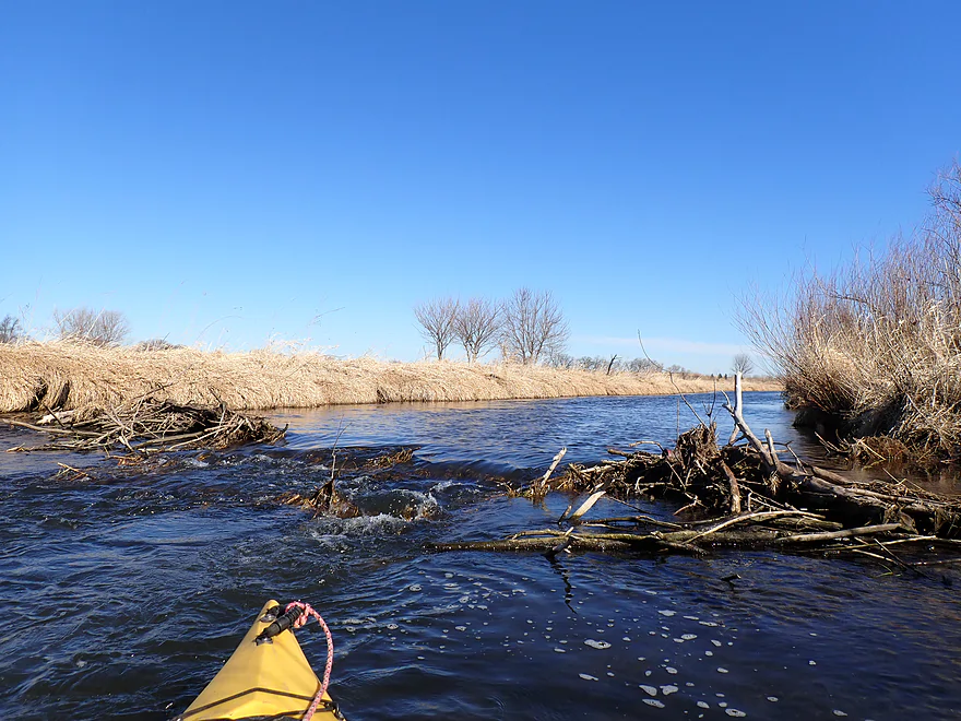 - Hwy 59 to Old Hwy 92: 2.5 miles. Nice open, grassy stretch. There is one logjam that is an easy portage.