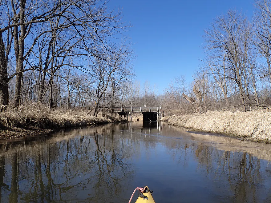 About a mile in, the creek’s personality changed. The man-made “ditch” ended, and Allen Creek started to meander naturally with more trees. With woods, however, comes logjams, but fortunately I needed to make only one portage and it was easy.