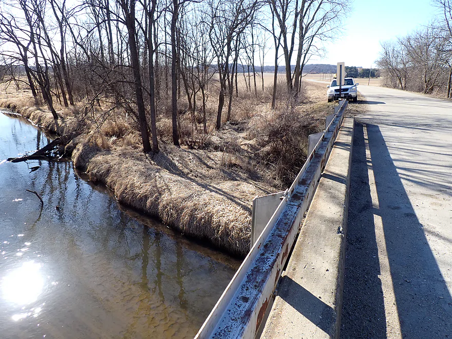- N. Evansville Brooklyn Road1st to N. Evansville Brooklyn Road2nd: 2.3 miles. Creek is a tiny stream that is surprisingly open. Maybe 2 logjams.