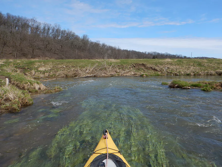 - Church Road → Hwy Q3rd: 1.2 miles. A nice open pasture section with many riffles, but one I-beam to portage.