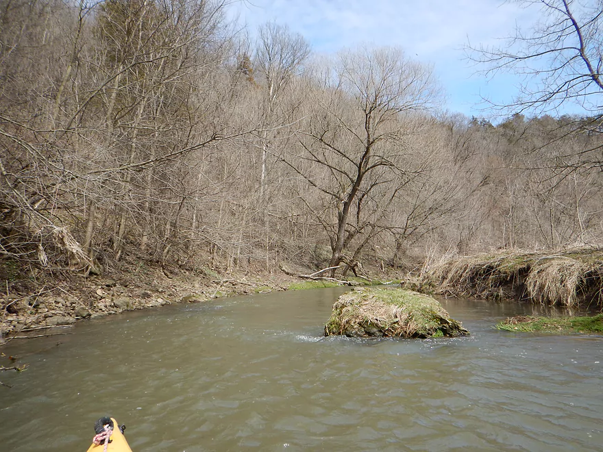 After a gorgeous oxbow, the river beelines for Cedar Cliff which is a steep hill on the south side of the Snow Bottom State Natural Area. This was my favorite part of the creek because of the multiple rapids, boulders in the water, and steep rocky hillside. It’s a neat scene that would probably be more striking in the summer when everything is lush, green and shady.