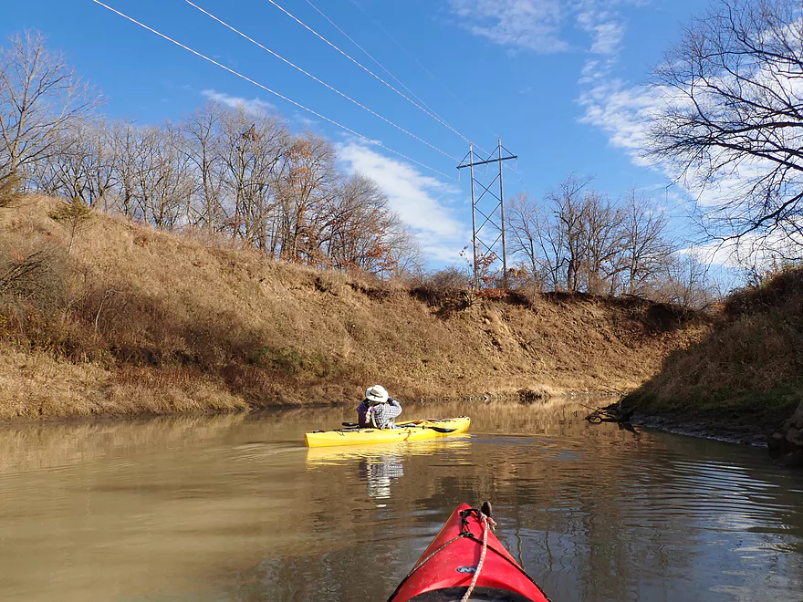 Catfish Creek Canoe/Kayak Launch: This is a nice public access located by the Mines of Spain Road bridge. Typically it has a floating dock which helps paddlers get in/out, but during our trip it had been pulled for the winter. You can still launch ok without the dock along the dirt banks, but be advised the creek here is deep so you want to be careful.
