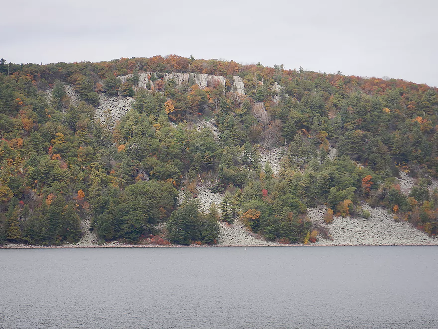 - Tumbled Rocks Trail: 1.0 miles. This flat trail hugs the west shoreline and is super easy. Highlights include huge boulder fields. Many return on this trail after hiking the West Bluff Trail which is just above.