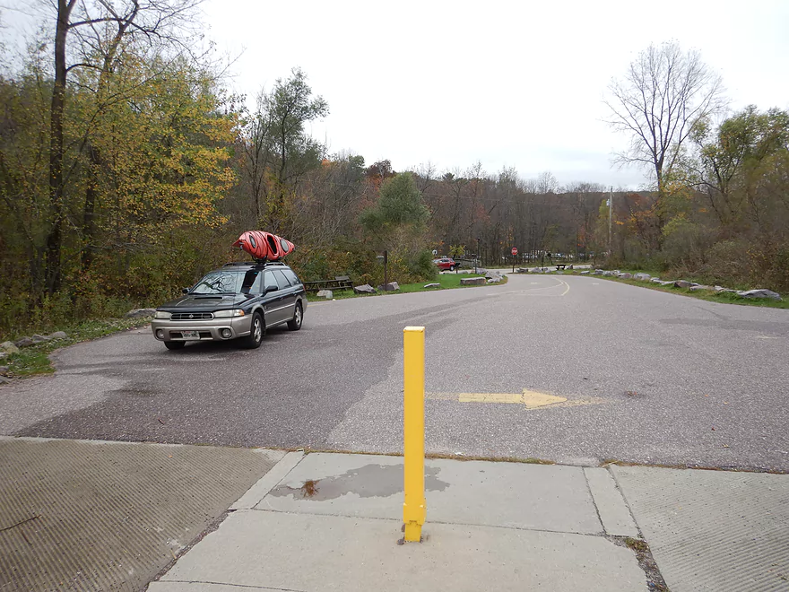 I got a late start for this trip, which was unfortunate, as this being a a fall color weekend meant parking would be an adventure. Fortunately I missed (by about an hour) the entire north entrance being closed. Here I descended down a tremendously scenic one-way road enclosed by a canopy of turning maples. Cars were pulled off here…just to take pictures of the road. At the bottom of the hill, the park staff had closed the main parking lot, which for me was a big deal because that was the only way to access the north boat ramp. So I kept driving until I reached the final east overflow lot (which was also on the verge of filling up). Because of its close proximity to the lake and a nice nearby gravel shoreline, it was actually a pretty good launch option.