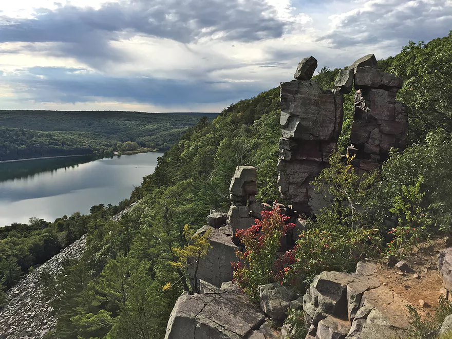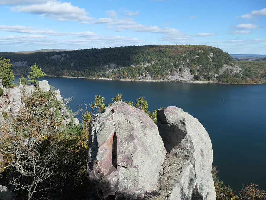 Roughly 15,000 years ago the Wisconsin River used to flow though what is today Devil’s Lake. However, the Wisconsin Glacier would encroach on the area and leave moraines that sealed in Devil’s Lake while rerouting the Wisconsin River much further to the east. The quartzite bluffs themselves date back much further when there used to be shallow seas in southern Wisconsin. The resulting sandstone compressed to quartzite which is what we see today.