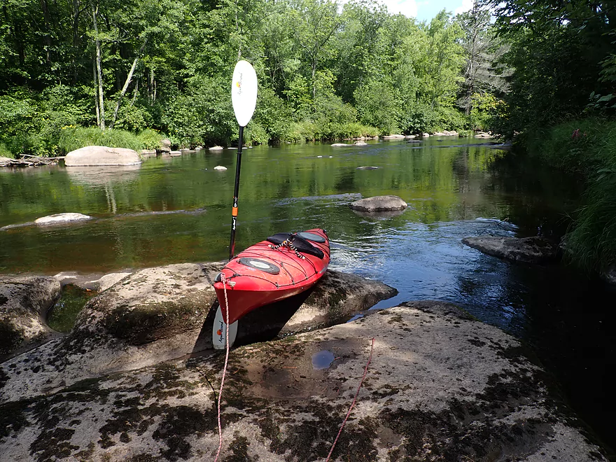 - Edwin's Park to Cty J: 4.1 miles. A nice section with a few rapids and boulder gardens. The Mountain-Bay State Trail pull-off is an alternate access option.