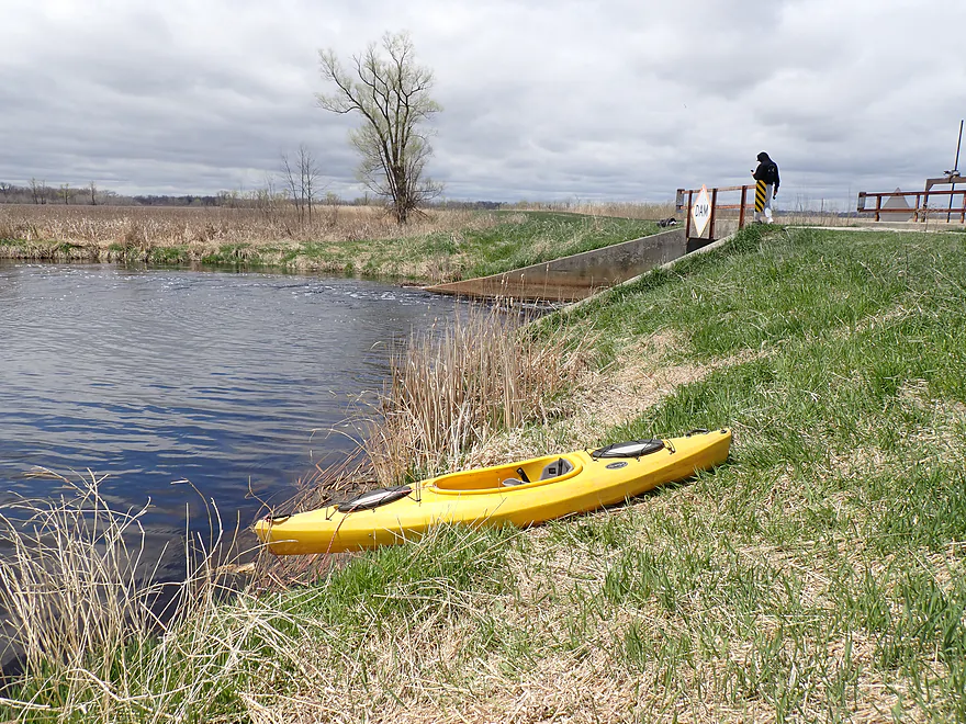 - Hwy C to Eldorado Dam/Dike Road: 3.7 miles. The greater marsh used to be more popular with canoers, but invasive cattails have since assimilated and blocked off the former inlets and bays that were fun to explore. Paddlers can still still explore a small lake north of the dam and paddle a bit upstream on the river.