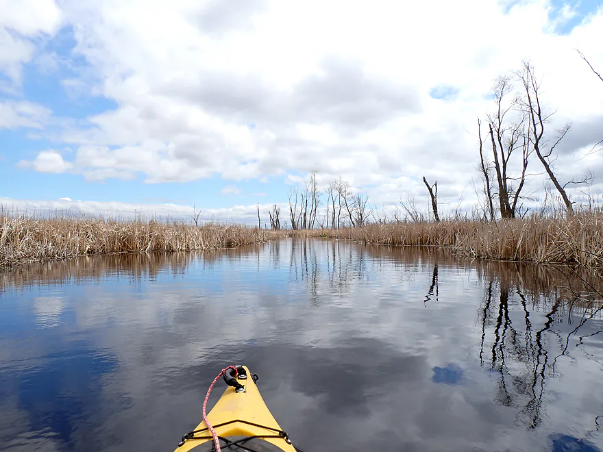 - Eldorado Dam to Hwy 23: 3.1 miles. A mostly pleasant cattail paddle with good marsh scenery. As of May 2025 there is one cattail jam, but I was able to get past this with little difficulty.