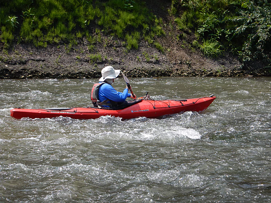 The current was fast with many riffles and rapids (most of which were Class 1 and easy). What was difficult was on occasion fast current would flow under or by low branches. Experienced paddlers shouldn’t have difficulty with these strainers, but they are something to be mindful of.