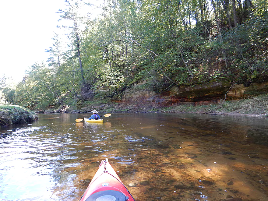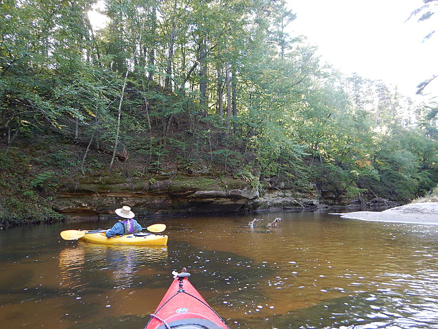 Ok…not exactly a paddle, but one of the best hikes in Wisconsin with amazing overlooks and sandstone formations, including a cool sandstone arch. Just don’t get run over by the runaway mountain bikes that share the trails with hikers. Here is a park map. I suggest parking in the east parking lot and ascending the mound via the North Face trail. There will be a couple of nice overlooks you can access once you get to the top. I then suggest heading east to the Cliffhanger trail which is a fantastic path located just underneath the mound with amazing exposed sandstone. At the southeast tip there will be a faint trail that lets you re-ascend the mound and connect with the South Point trail. At the tip of South Point are the best overlooks in the park. Keep heading west on top of the mound and connect to the Clarence trail for several more nice overlooks. At the southernmost point of Clarence is a cool sandstone arch that is off the trail and easy to miss but well worth the visit. As you continue west, Clarence turns into Toad Road and you’ll see more spectacular sandstone and go through the classic mountain bike section (with the board walk between the sandstone walls). Heading back east, the Switchback trail has some more nice rock formations, but they mostly peter out by the time you get to the east side of the mound.