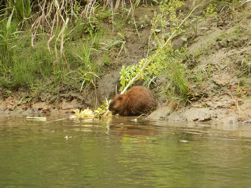 Sights included ducklings, a muskrat eating a snack, and four eagles. Three of the eagles were probably fledglings and not good at flying. One was sitting on a snag by the river, soaking wet, and (according to the canoers ahead of us) had been under the water when they saw him (oops). What was surprising was how close (as in ~8′) we were able to get to the wildlife (especially the non-nonchalant muskrat and the one eagle). I presume this is because the wildlife is so used to people.