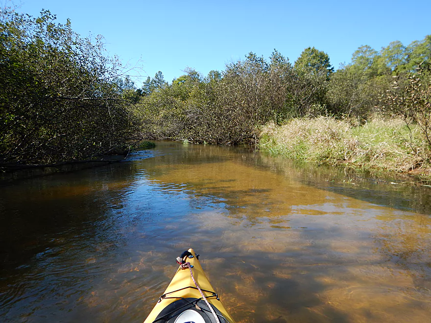 Not a single log jam nor any squeakers! Maybe two-thirds into the trip, you’ll encounter the dam at Angelo Pond which must be portaged, of course, and is easy to do on the northwest bank. There are some open sections, so do be mindful of wind speed and direction.