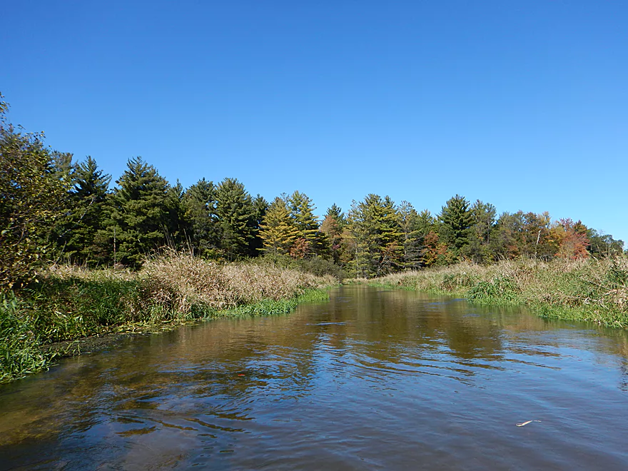 I had hoped the trip would be somewhat like Robinson Creek minus the sandstone because of the proximity of the two watersheds, but this mostly wasn’t the case. No sandstone. No ferns. Unlike Robinson, the upper La Crosse also has serious road noise for much of the trip (Hwy 21) which was surprising. However, they did share the same random booms throughout the day from training exercises at Fort McCoy