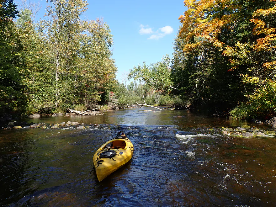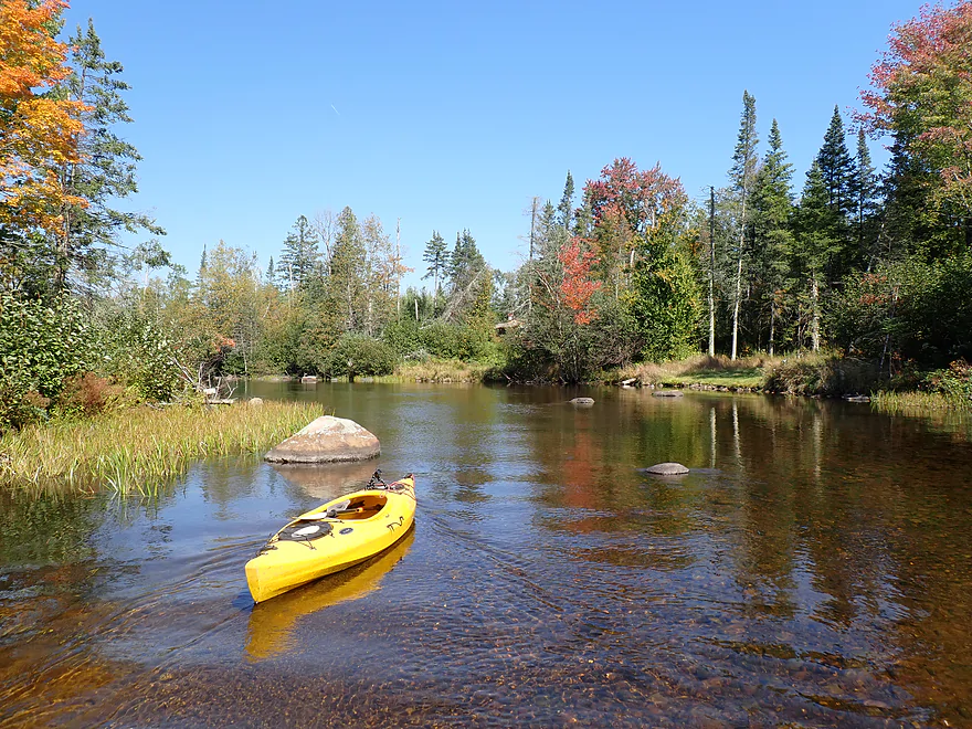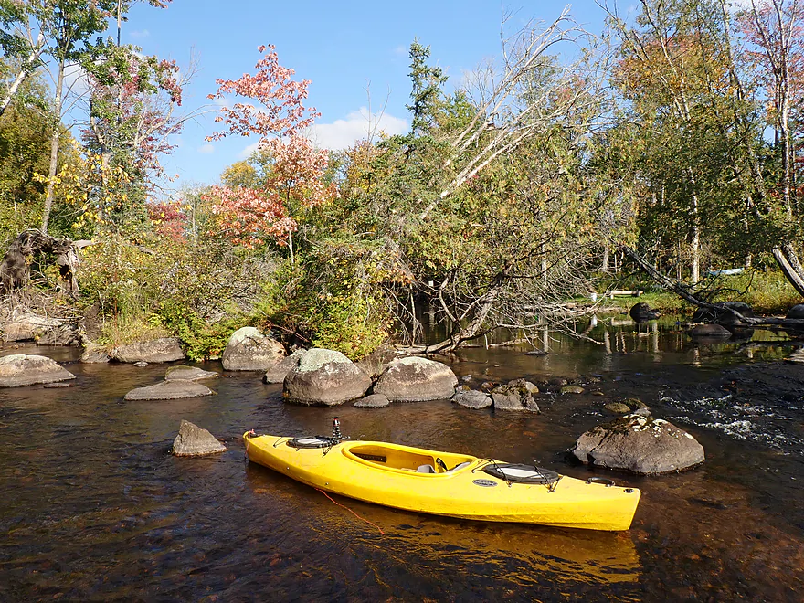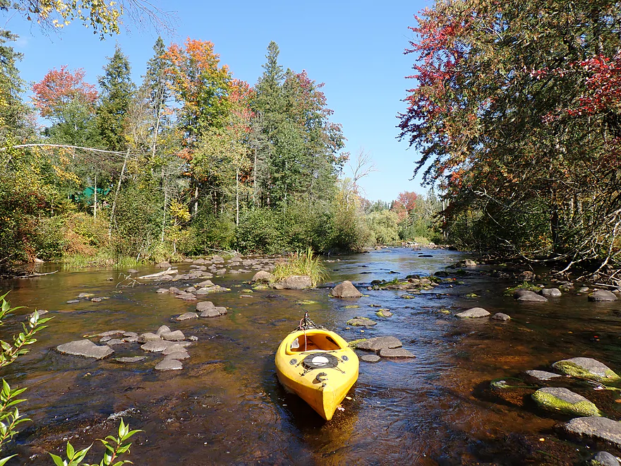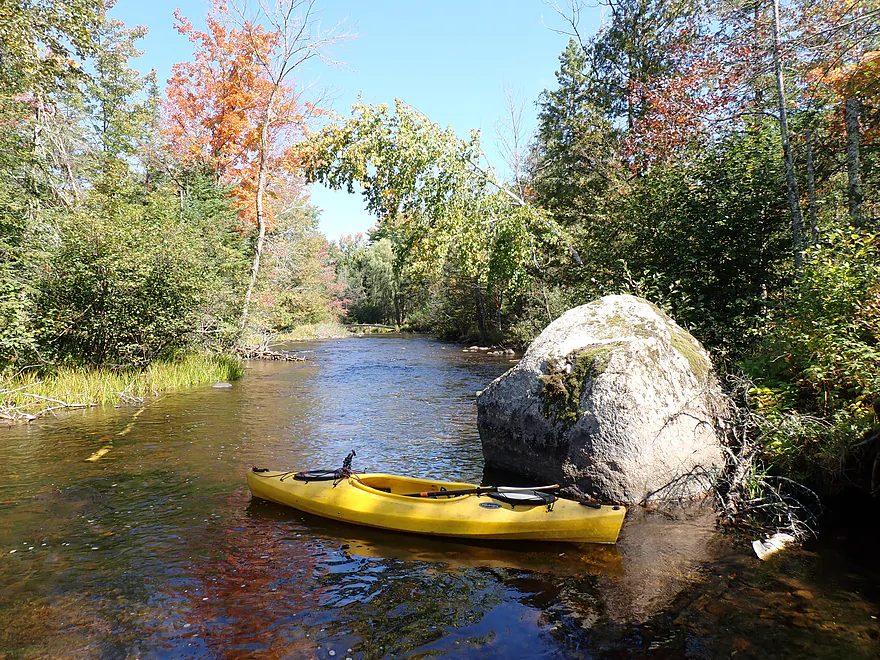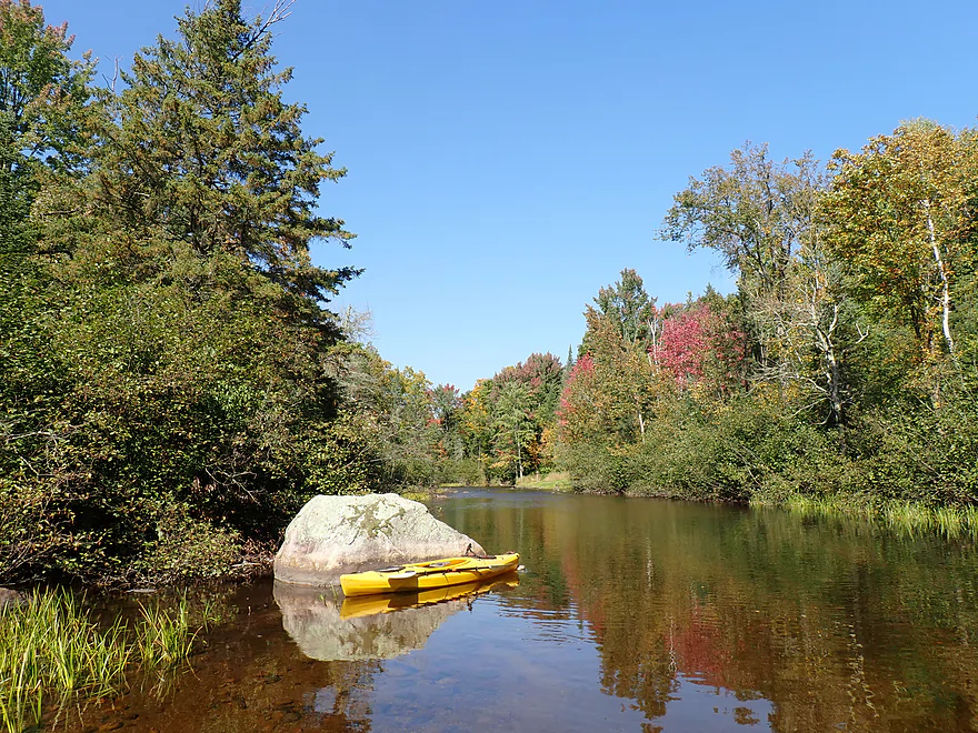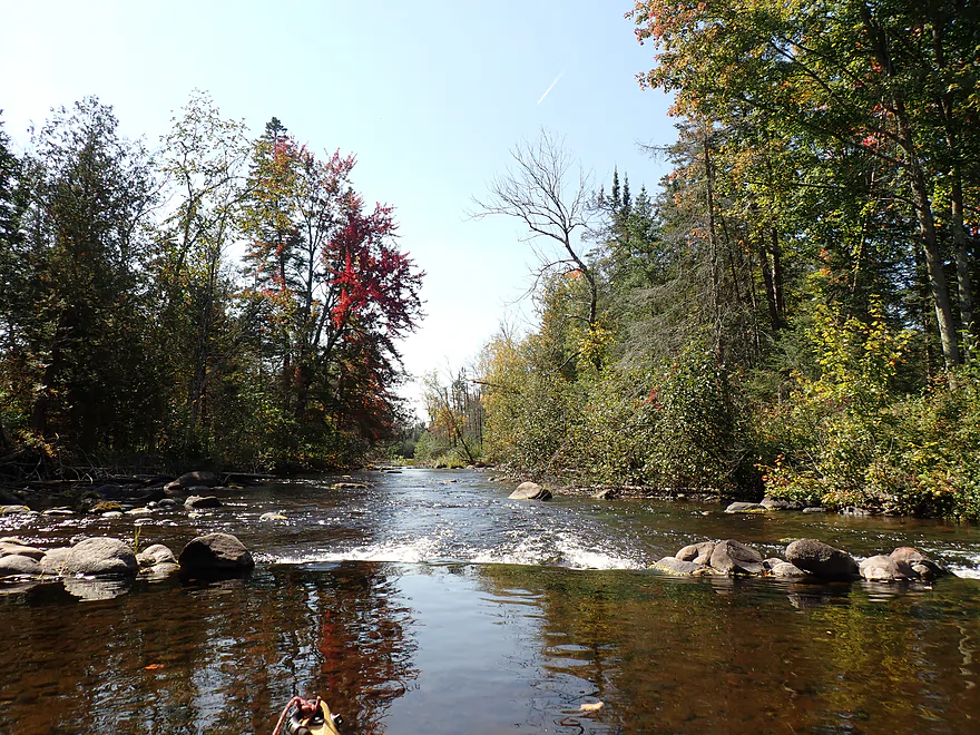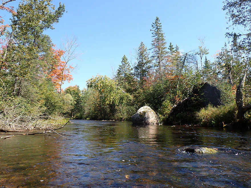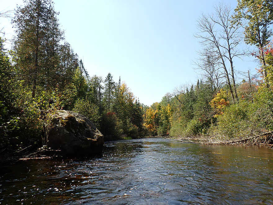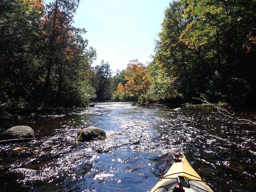 Honestly though…even if all three of these conditions were met…the famed Wolf River is just next door and for most paddlers will be the preferred paddle. The boulders are bigger, the rapids more fun, the wooded banks less logged, and there won’t be the shallow water issues of the Lily. My predominant thought as I paddled out onto the Wolf was wow, the fall color and scenery were surprisingly good and I wasted an opportunity to do that instead. Oh well.