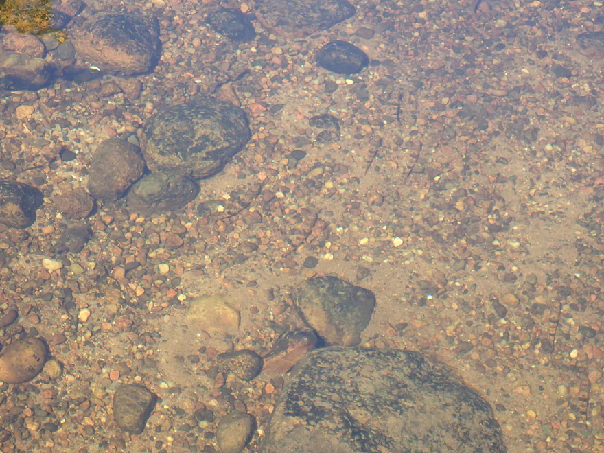 Rapids/Current: The current moves at a good clip with multiple riffles and light rapids. None of the rapids are stronger than Class 1. However, in high water tricky strainers could develop around some of the downed trees.
