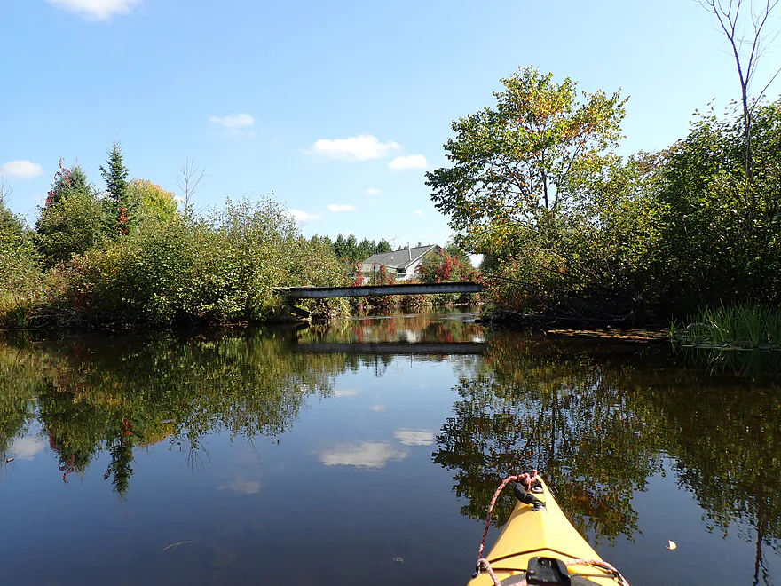 This was followed by a half-mile stretch of impounded water. Here there was a brief marsh, small cottages and evidence of prior logging. Despite this, it was an attractive leg and a nice change of pace. The dam proved to be a relatively easy portage.