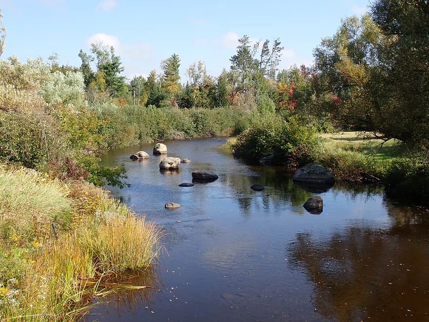 - Hwy A to East Branch Confluence: 1.3 miles. A narrow, shallow, wooded, and somewhat congested section. Not recommended unless it gets cleaned up in the future.