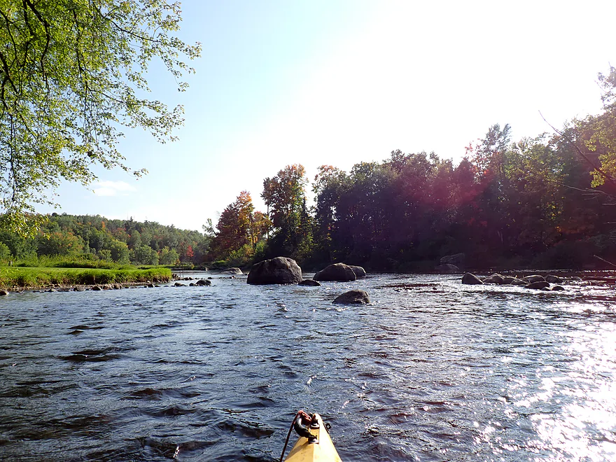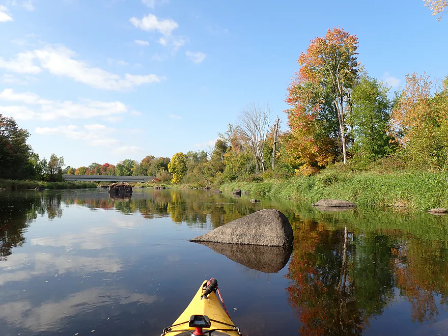- East Branch Confluence to Hwy 52: 3.1 miles. The best part of the river with good wooded scenery and boulder gardens. Parts are shallow though and there are some logjams to deal with.
