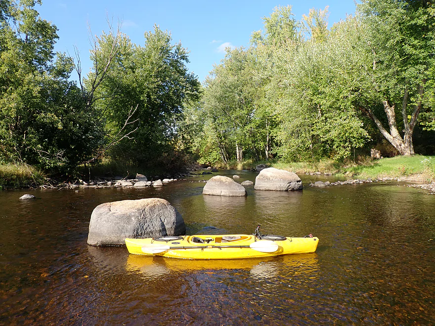Dams: There is one dam about 4′ high located roughly halfway into the trip. It was an easy portage. There are a number of amateur little rock dams on the river created by locals…these are fairly easy to get over.