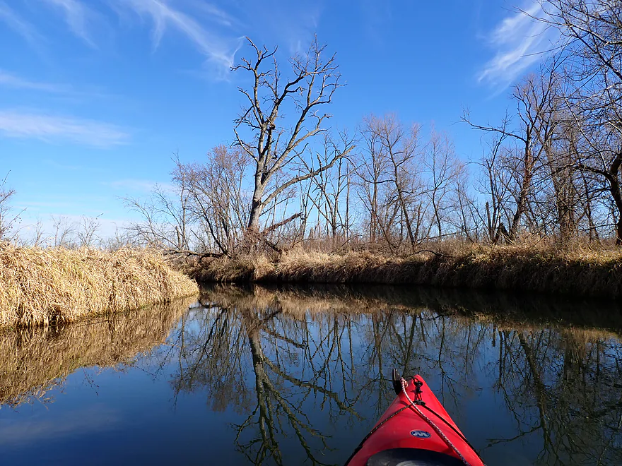 Deer Hunting Season: The DNR does allow deer hunting in the Albany Wildlife Area. I think most hunters stay close to the roads (and the bike trail where I saw several groups), but I doubt they hunt close to the river as it would be a long walk. I think you’re safe to kayak this river during hunting season, but you should wear bright, colorful clothing.
