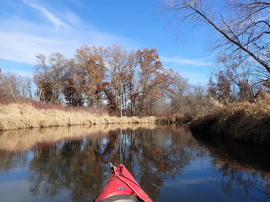 The Sugar is a popular paddling river in South Central Wisconsin. It has a lesser known tributary, the “Little Sugar River”, which I explored previously by New Glarus. I’ve been hesitant to kayak more legs out of fear of logjams. But one section that I knew would be reliably navigable was the final three miles, which I opted to do as a late November paddle.