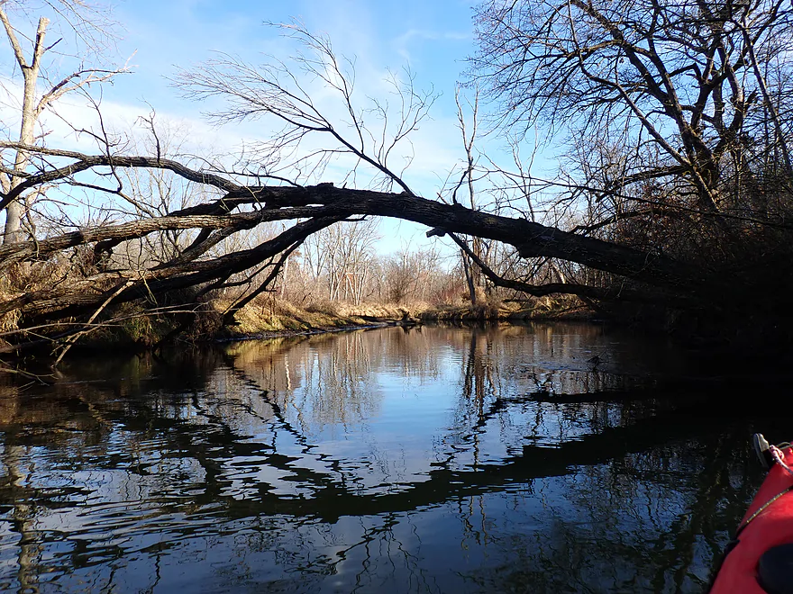 - Schneeberger Road to Tin Can Road: (4.4 miles) A very wooded section that is attractive and a scenic paddle. However, logjams are a serious issue and several require difficult portages. Not recommended.