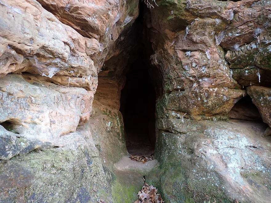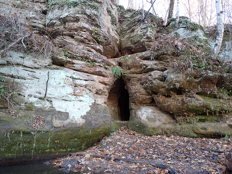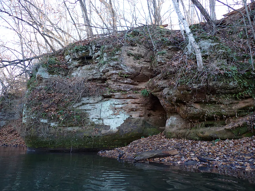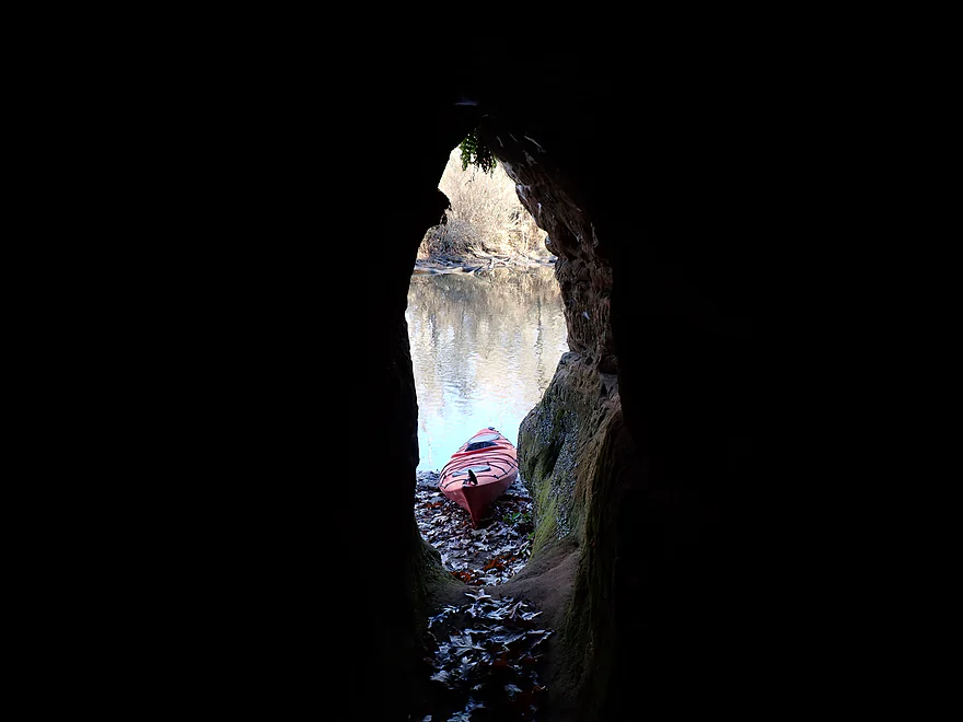At the base of the cliff is “Reuben’s Cave”, which you can get out and explore. It’s not very big, but you can fit completely inside and there is a nice framed silhouette view of the river from the interior. There is a lesser-known secondary entrance located just a bit downstream which I checked out as well. Many years ago the Little Sugar was much deeper (8-10’) and small steamboats would actually travel up to the cave with tourists (picture).