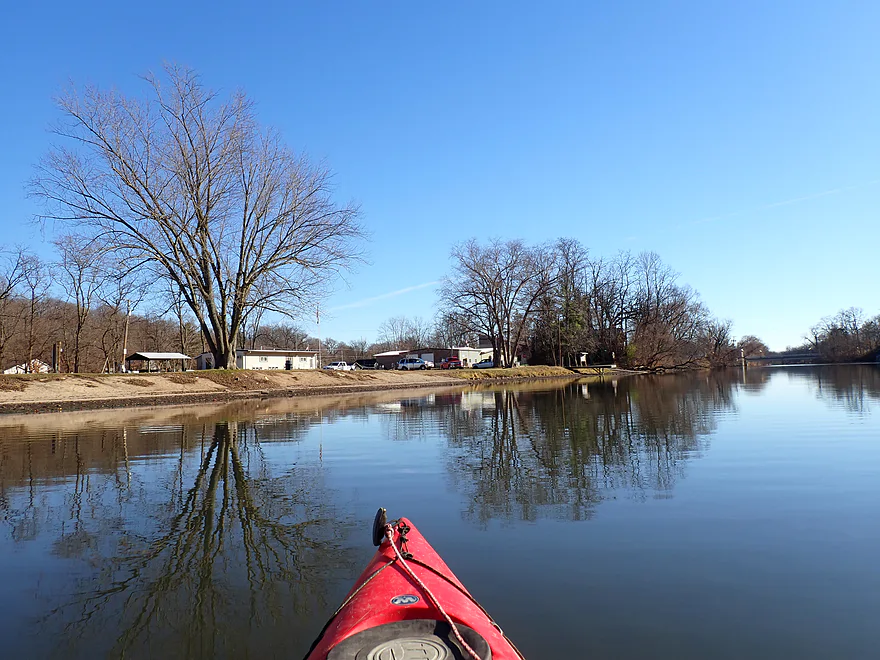 - Mouth to American Legion Park: (1.0 miles) The Albany Dam creates a shallow impounded lake on the Sugar River. It’s not super interesting and has some shoreside development, but it does feature some attractive wooded hills.