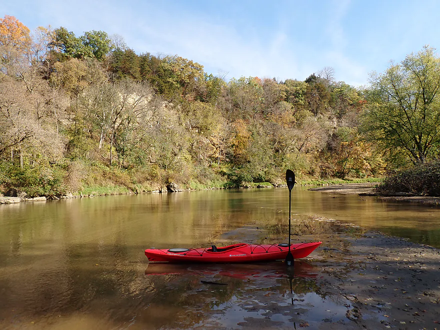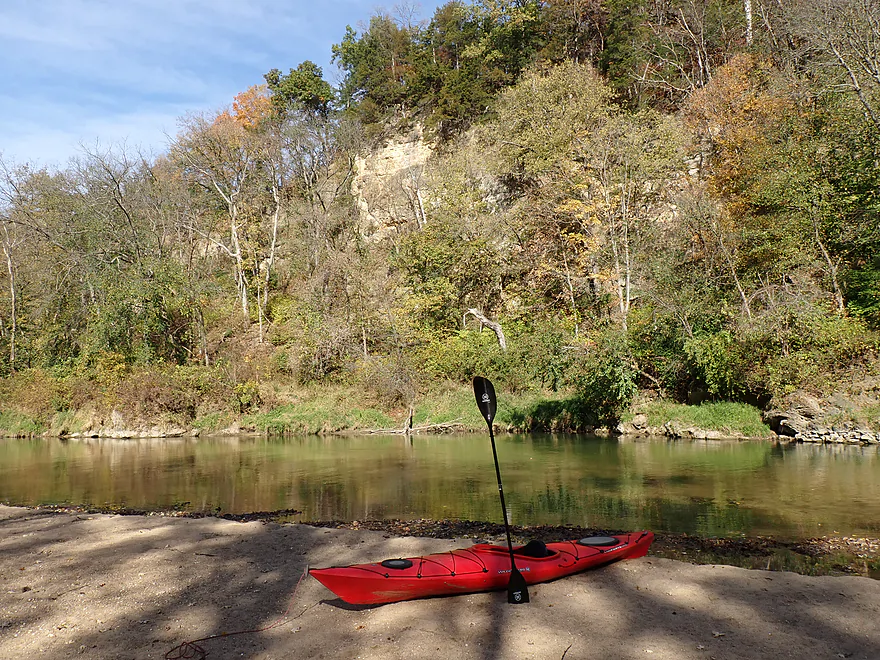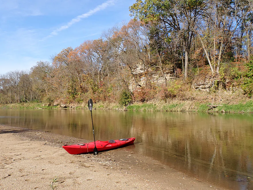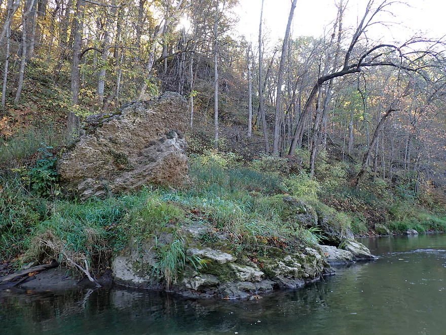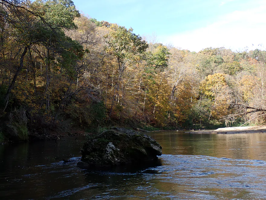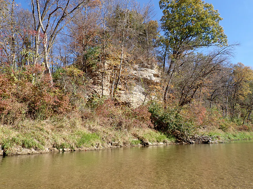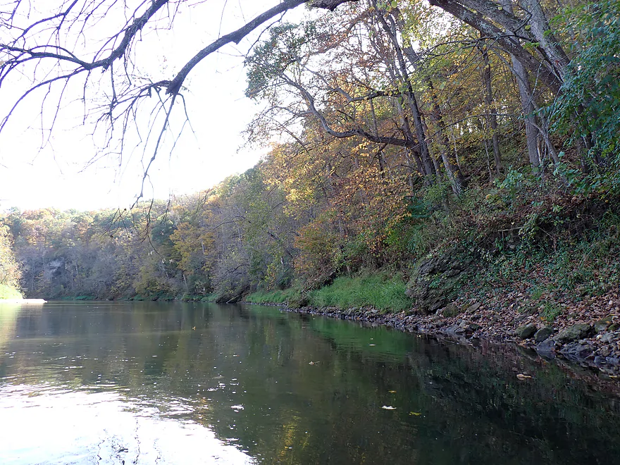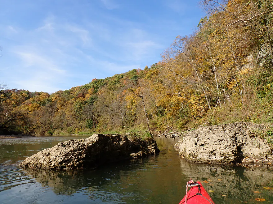 - Canton County Park to Millertown Access: 6.2 miles. This is a favorite stretch for some paddlers. Here the river flows between steep bluffs. Limestone boulders, cliffs, and bedrock are a common sight.