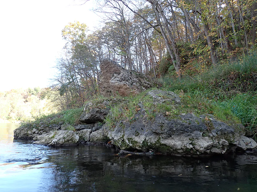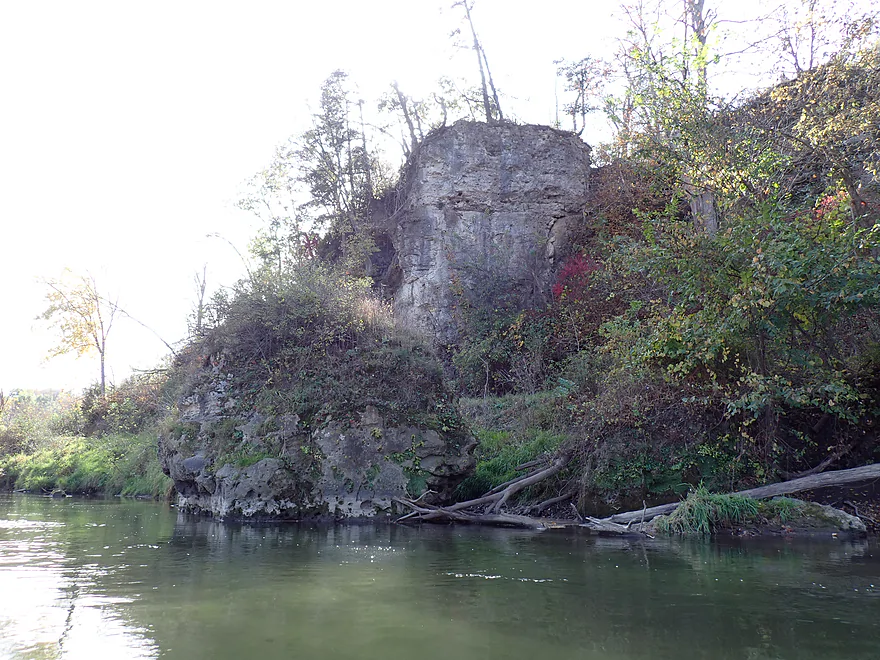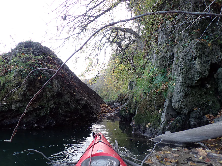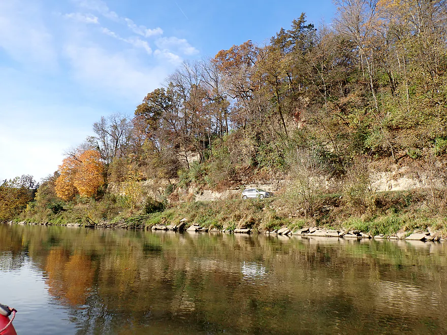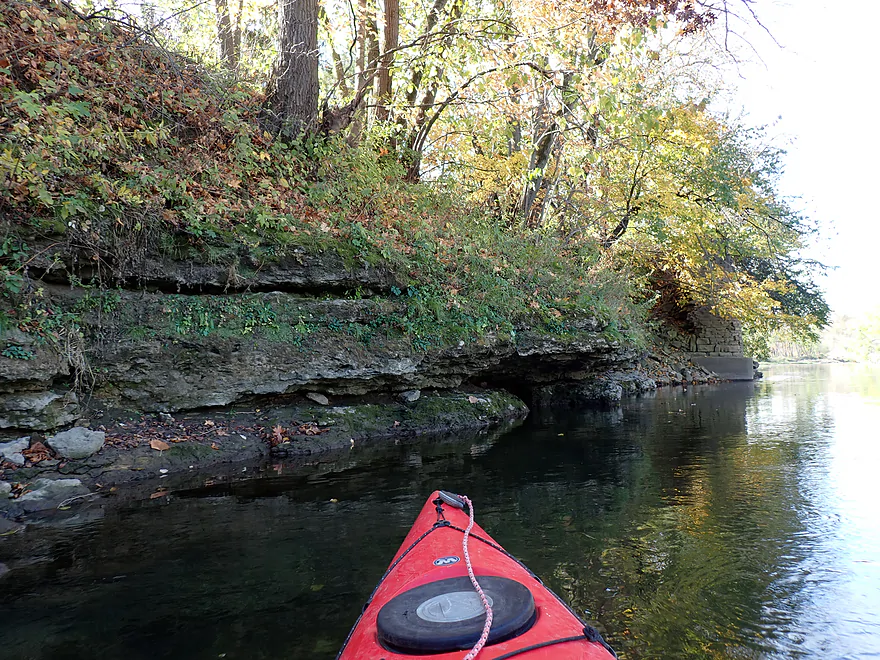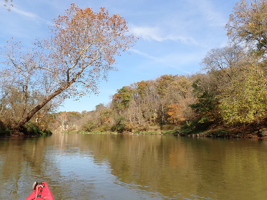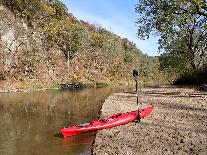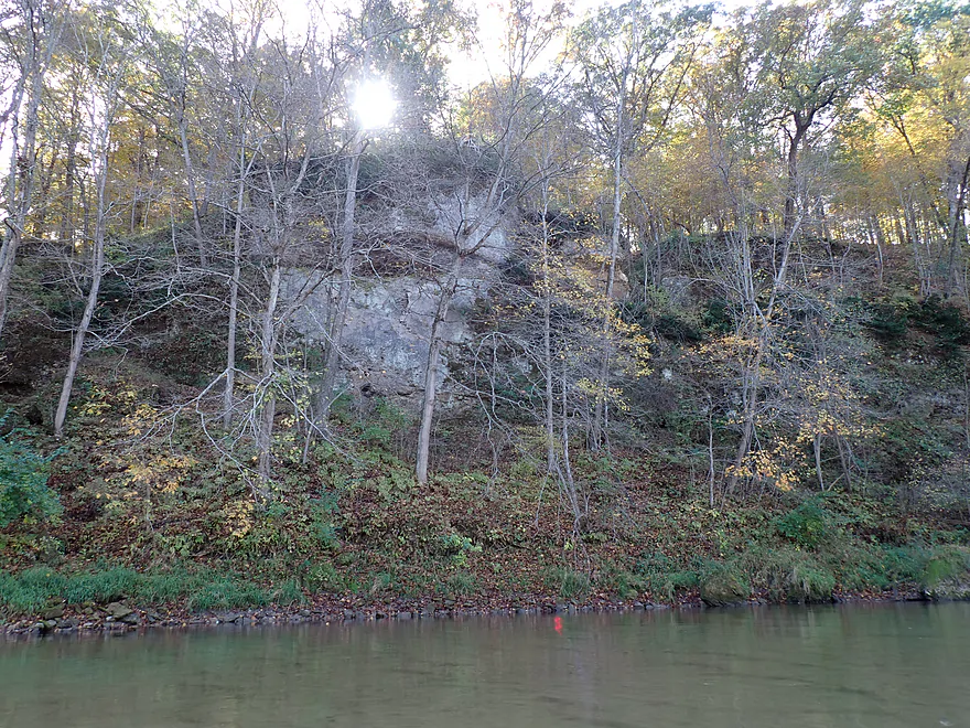 - Canton County Park to Millertown Access: 6.2 miles. This is a favorite stretch for some paddlers. Here the river flows between steep bluffs. Limestone boulders, cliffs, and bedrock are a common sight.
