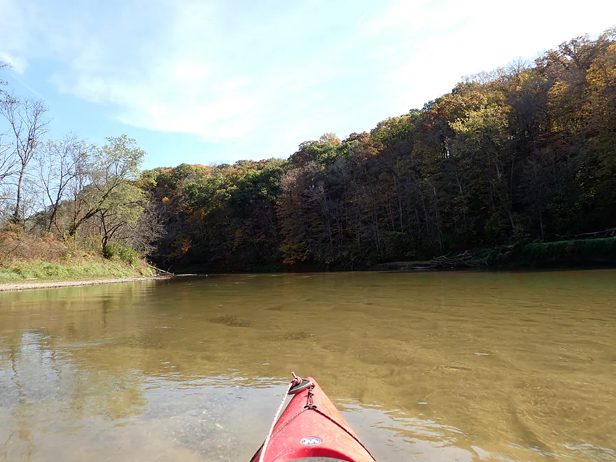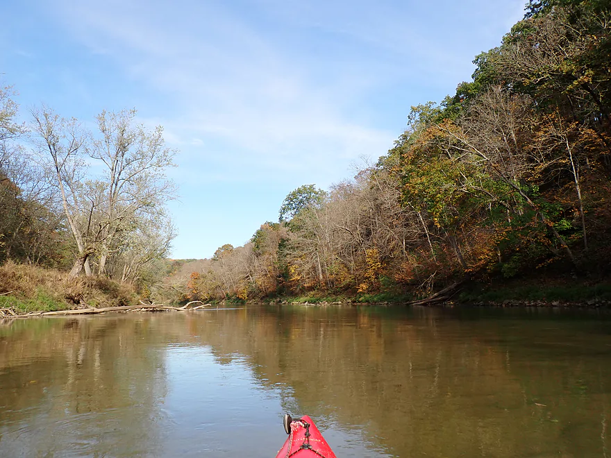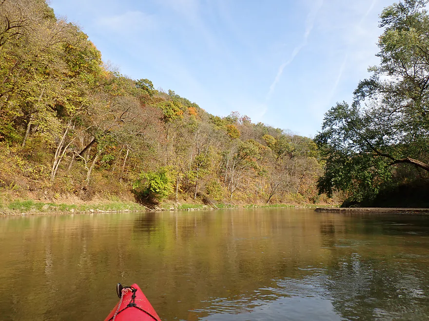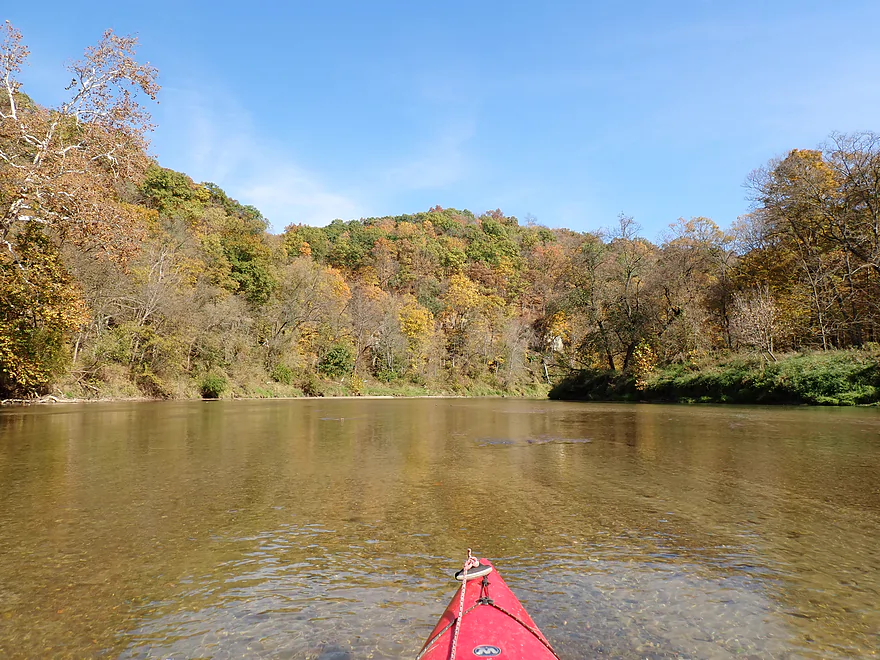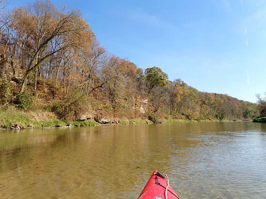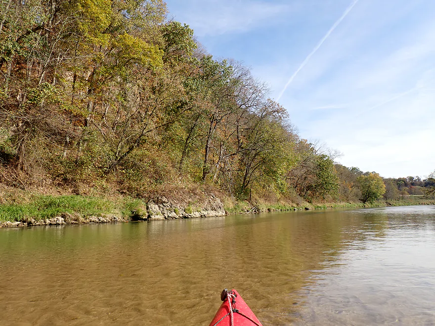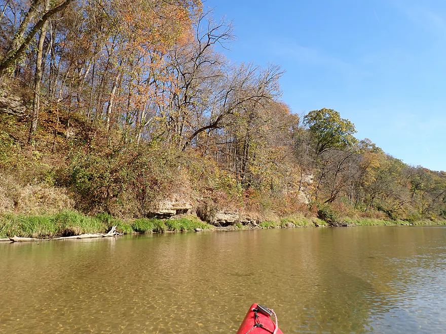 - Indian Bluffs Access to Eby’s Mill Access: 2.7 miles. The river flattens out somewhat and there aren’t as many steep, scenic bluffs, but there should still be some nice ones.