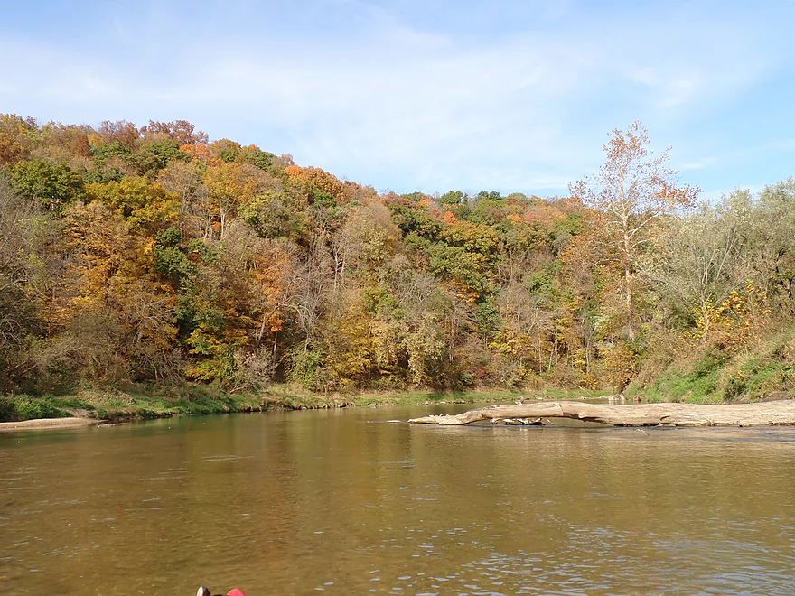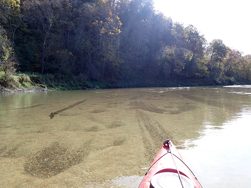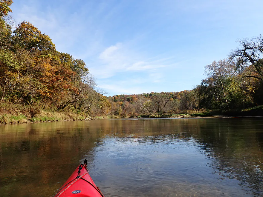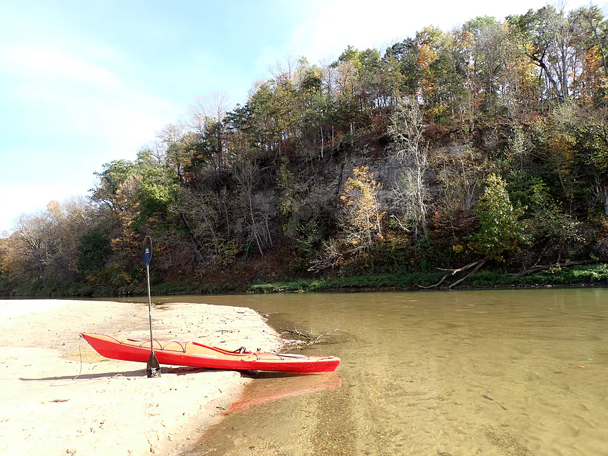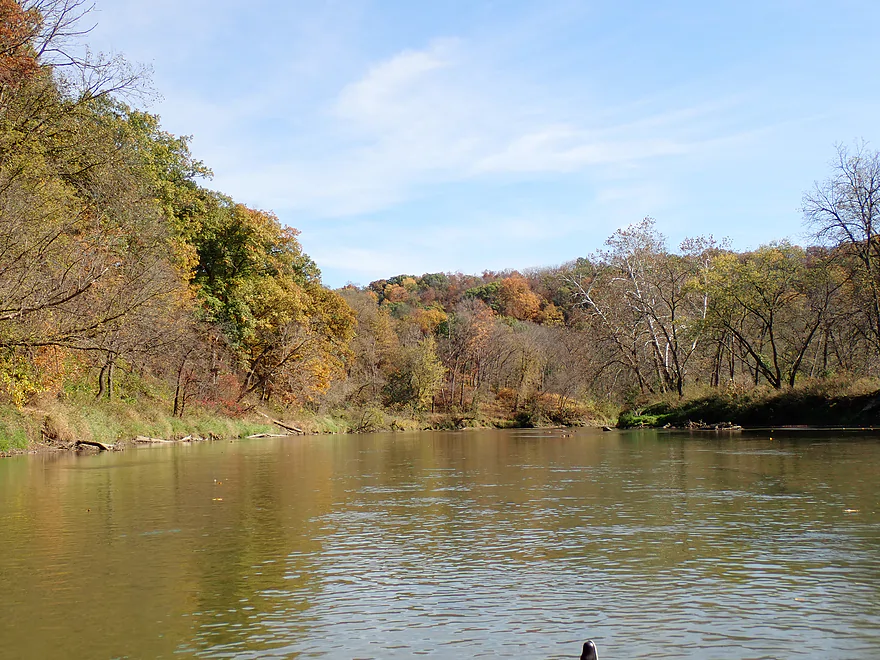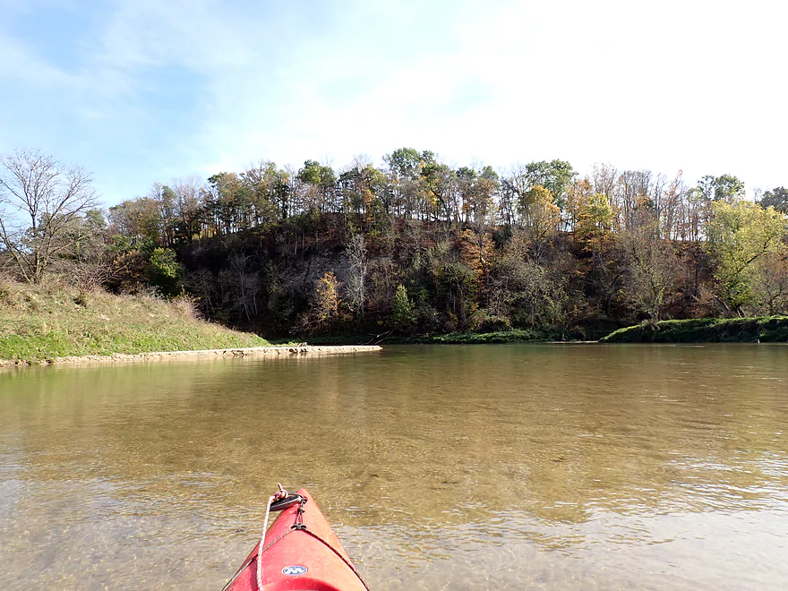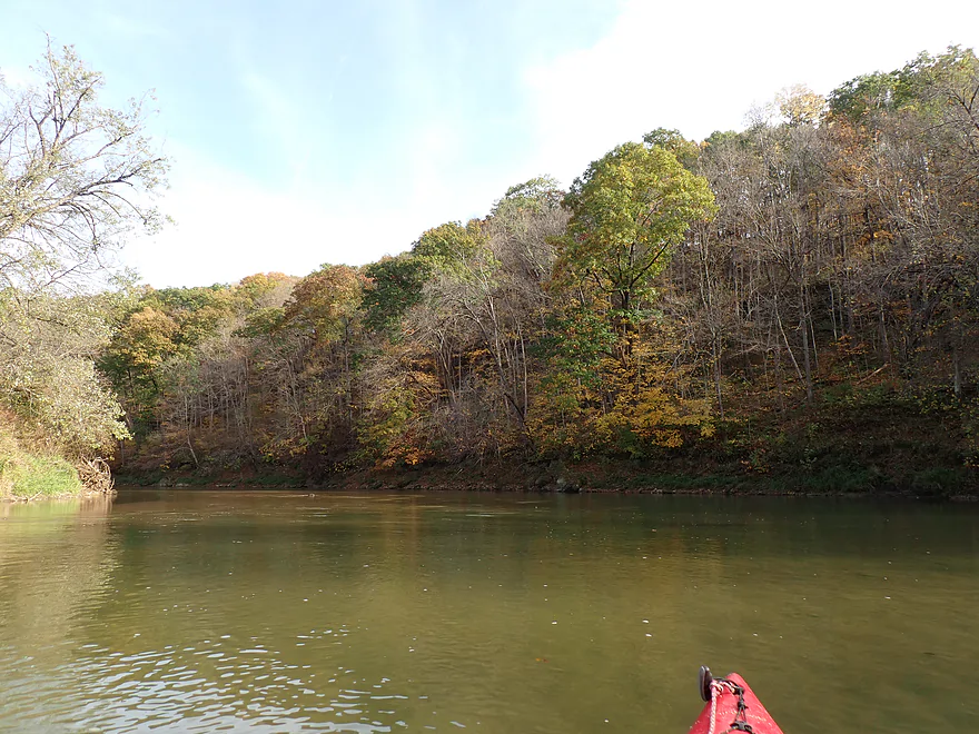 - Indian Bluffs Access to Eby’s Mill Access: 2.7 miles. The river flattens out somewhat and there aren’t as many steep, scenic bluffs, but there should still be some nice ones.