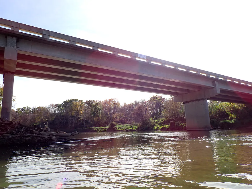 - Supples Bridge Access (6.4 miles upstream from Canton): Supples is a decent public access. This leg starts flat, but winds its way through some nice bluffs. Likely not as scenic as other stretches of the river, but still good.