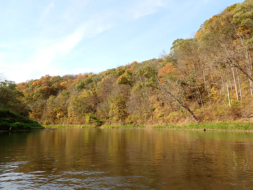 - Supples Bridge Access to Canton County Park: 6.4 miles. The bluffs finally return and provide good scenery. While likely not as dramatic as the Pictured Rocks stretch, this is a solid leg enjoyed by paddlers.
