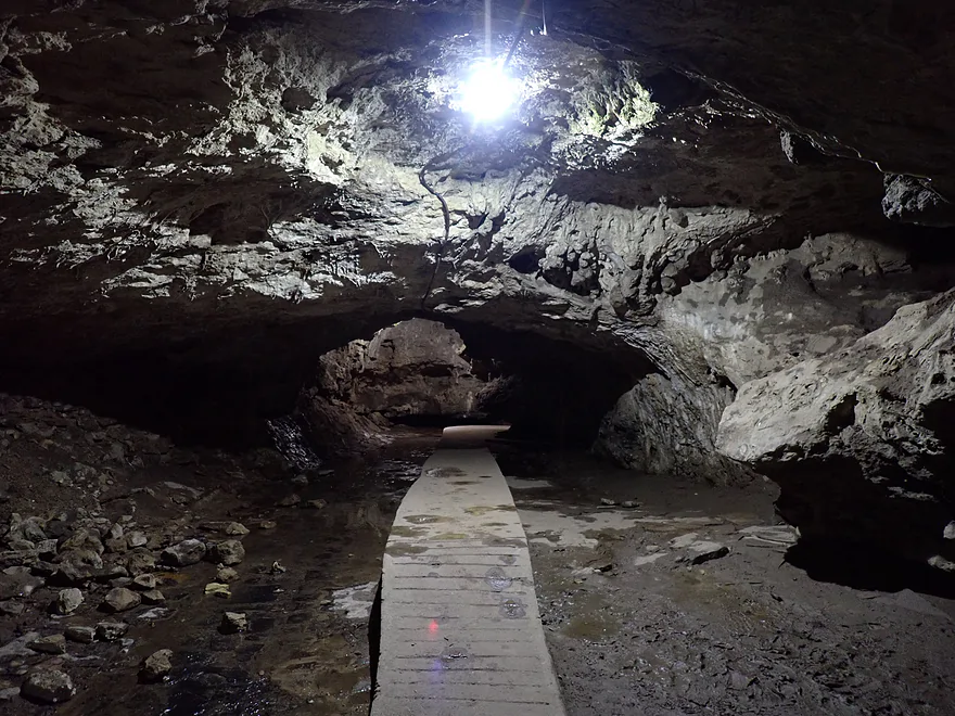 - Enter Upper Dancehall Cave Entrance…at first it just seems like a big cavern…but it keeps going and connects to an 1100′-long cave tunnel you can explore.
