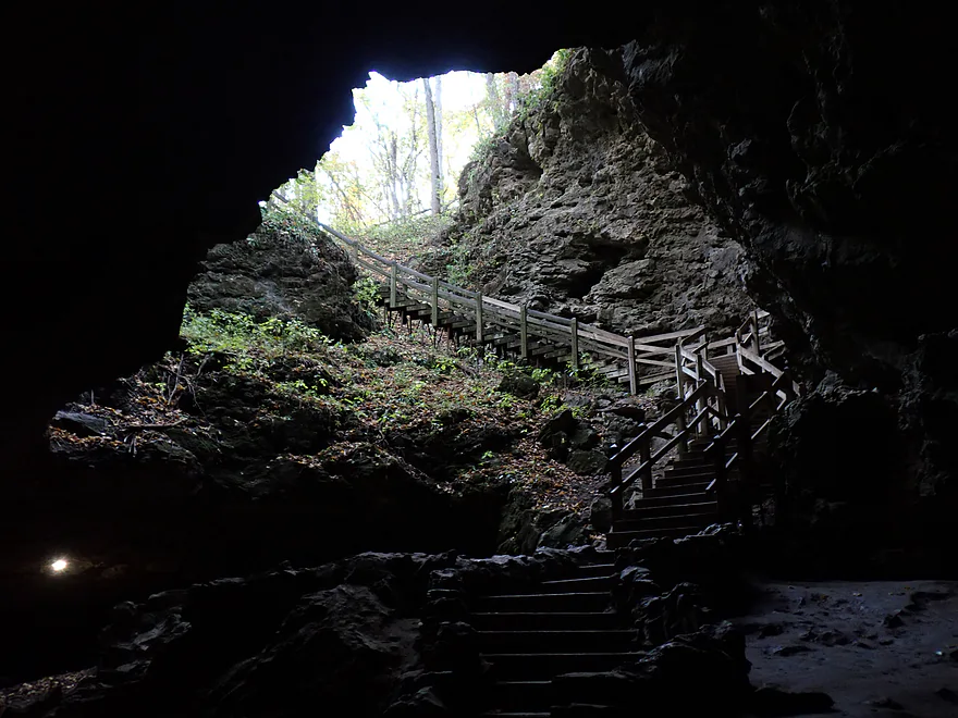 - The first exit will be the “Middle Dancehall Cave Entrance”. A steep set of stairs lead out…and from the top looking down is one of the iconic photos of the park.