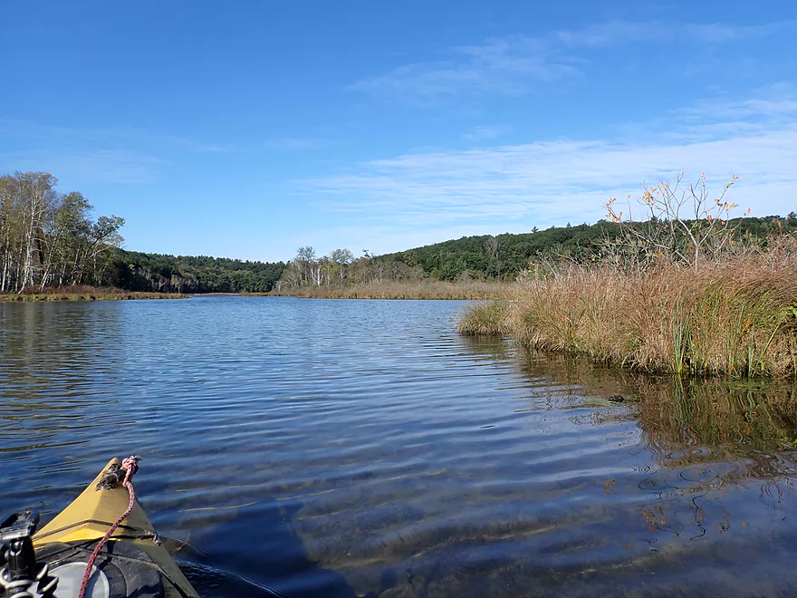 • Hwy Y to 14th Ave:  2.8 miles.  An excellent section with white pines, tamaracks, narrow twisty turns and crystal clear water.
