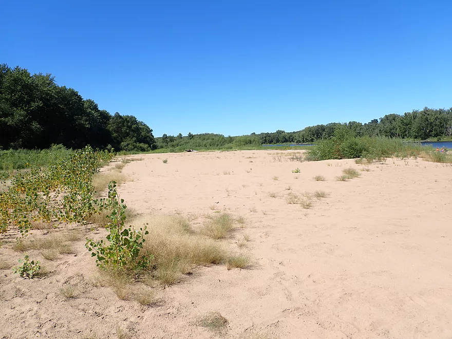 Long Lake Trail: 5 miles. A counter-clockwise circle through mostly backwater sloughs. Long Lake is mediocre and French Lake is boring and weedy. But the main channel is nice with good sandbars and bluff vistas. When in season, Big Marsh can contain scenic wild rice corridors.