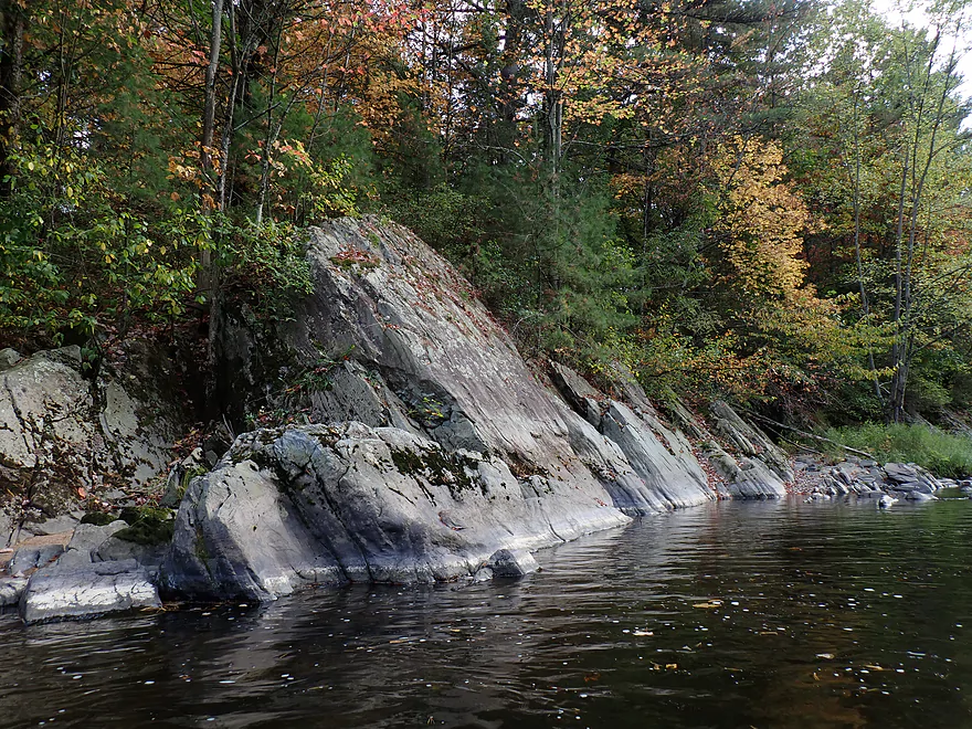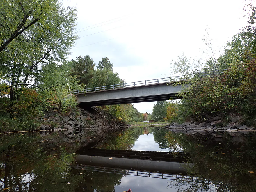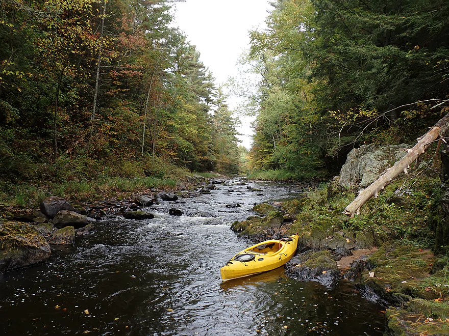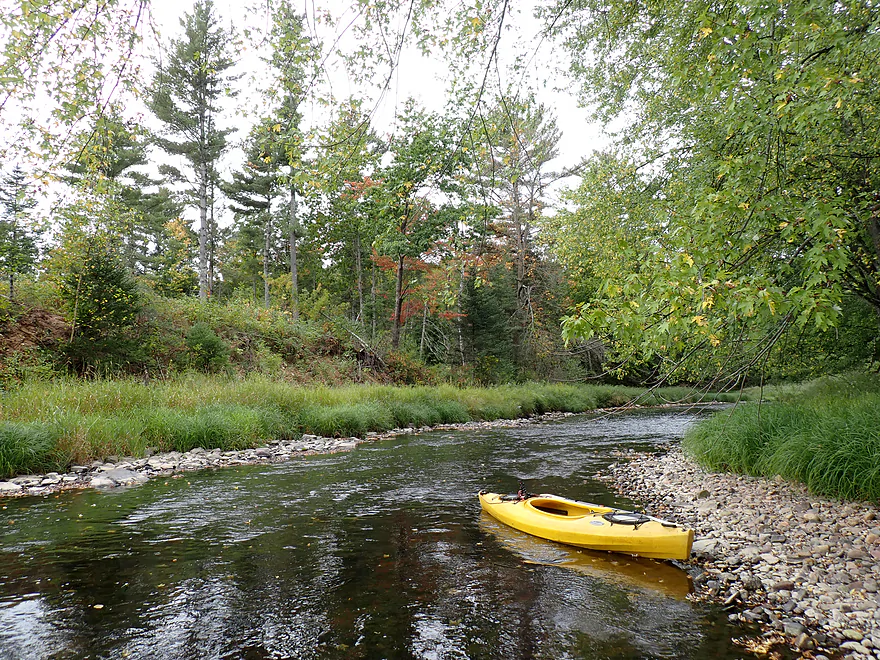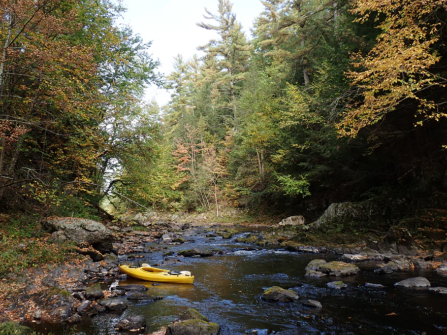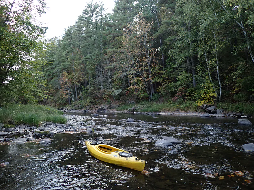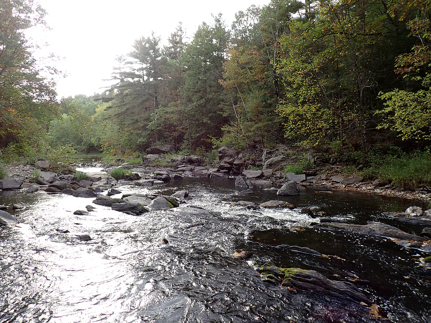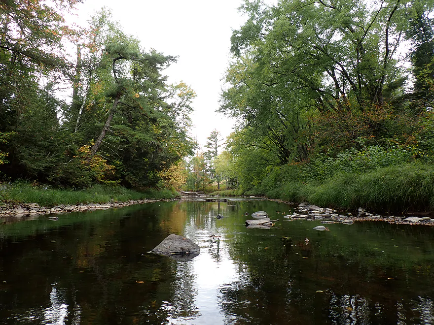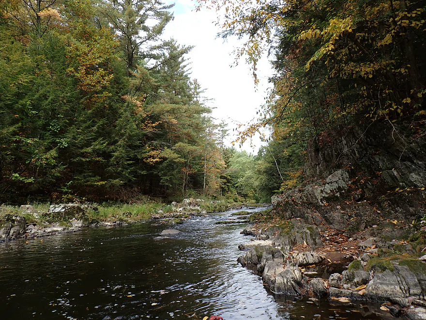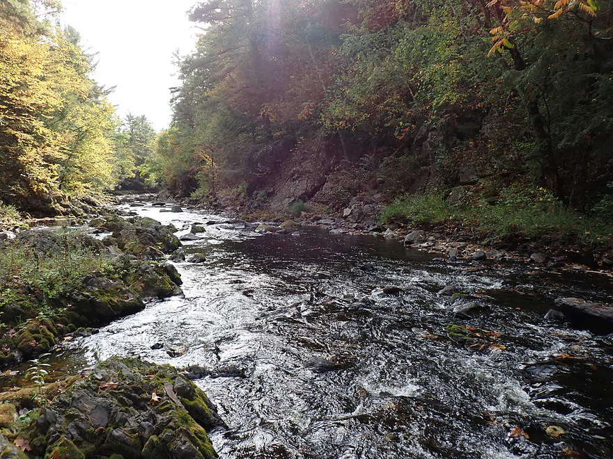 - Pine River Park to County Road W: 2.4 miles. The most popular stretch on the river. Highlights include extraordinary scenery, woods, boulder gardens, and the “Pine Dells” (a half-mile long granite gorge). Frequent rapids make this difficult to time, as it is often too shallow or too strong. There are two Class 3’s that need to be navigated carefully.