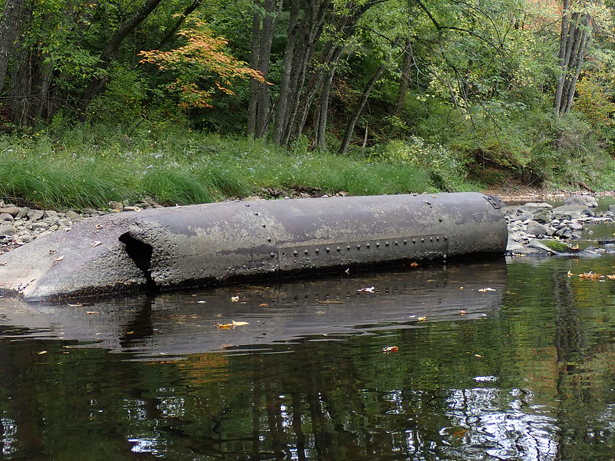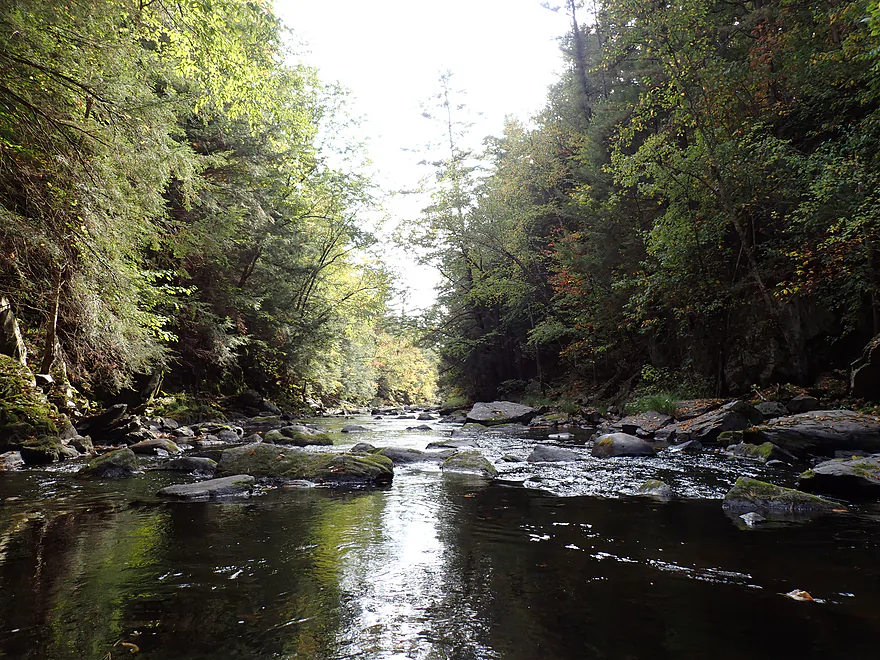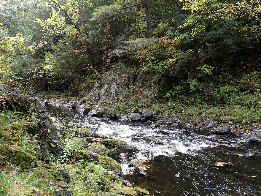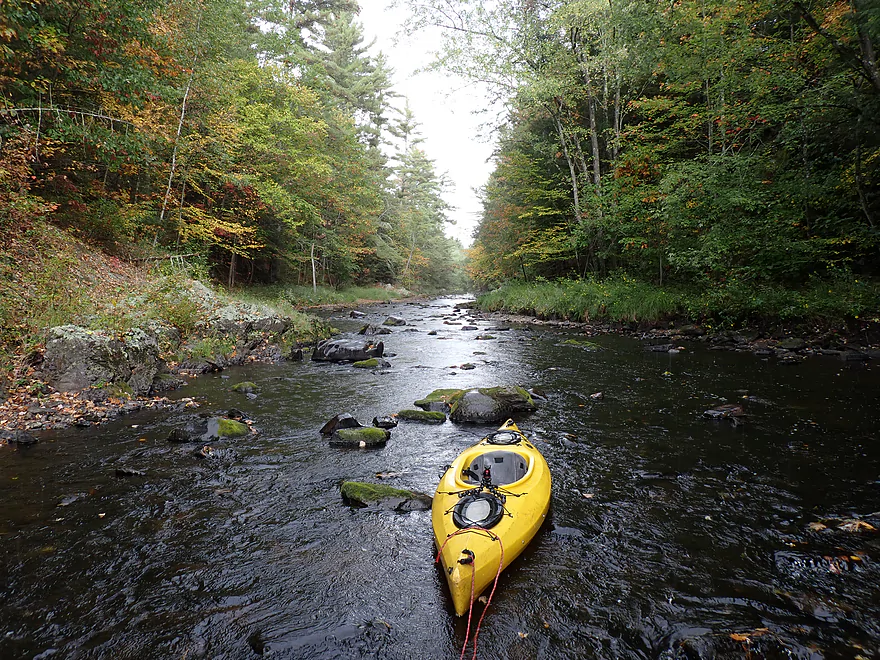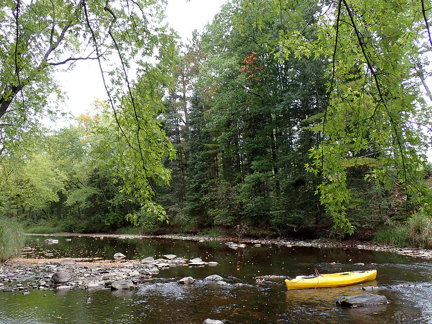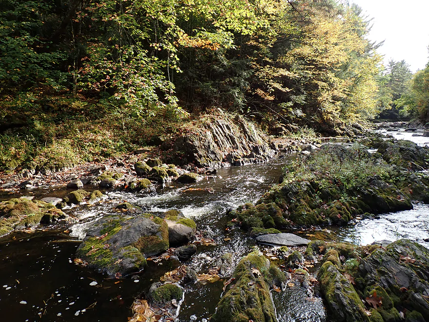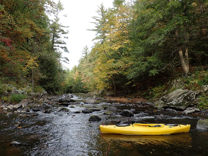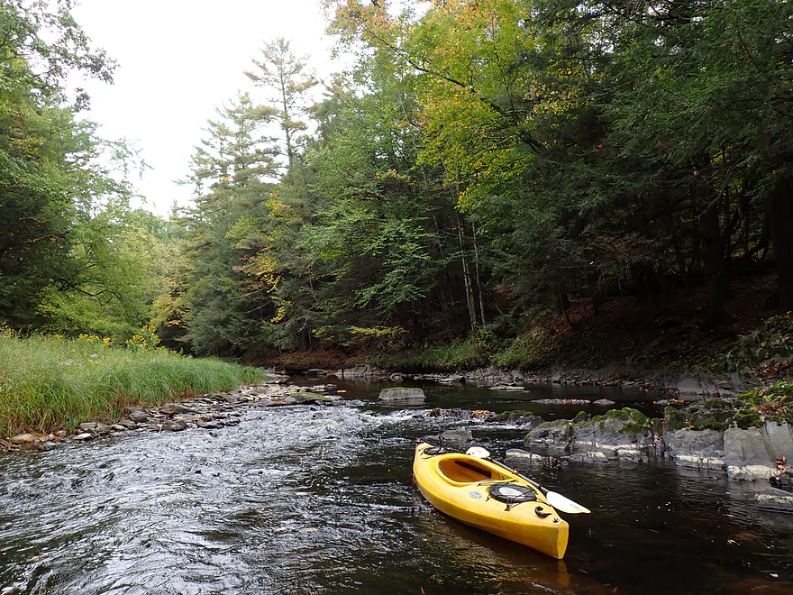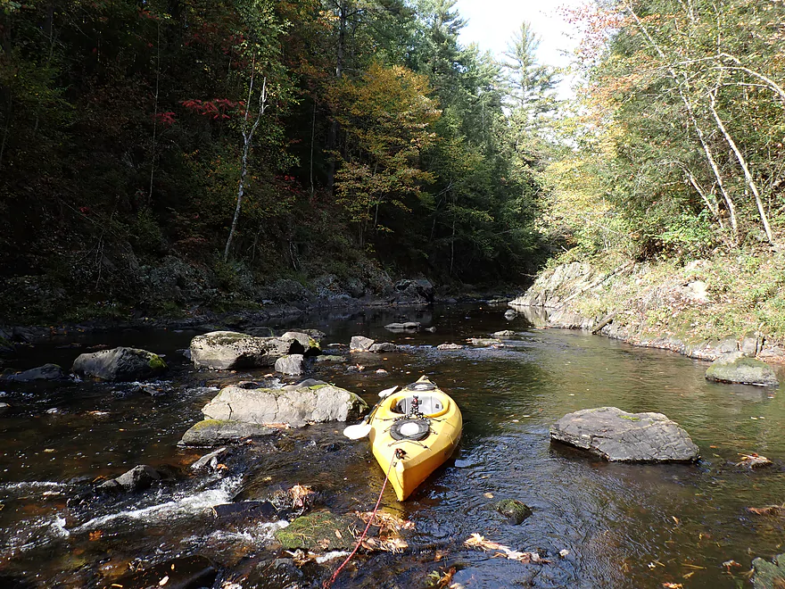 - Pine River Park to County Road W: 2.4 miles. The most popular stretch on the river. Highlights include extraordinary scenery, woods, boulder gardens, and the “Pine Dells” (a half-mile long granite gorge). Frequent rapids make this difficult to time, as it is often too shallow or too strong. There are two Class 3’s that need to be navigated carefully.