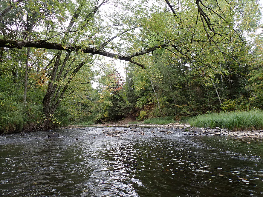 - County Road X to Cain Creek Road/Town Hall Road Ford: 3.3 miles. Paddling author Frank Piraino suggested this was a challenging leg due to its small size and shallow water. The river becomes significantly larger (and more navigable) after the North Branch joins up.