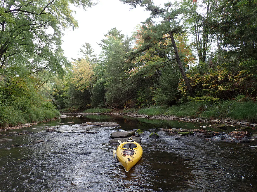 The Pine is a small tributary to the Wisconsin River located north of Wausau. It’s popular with local whitewater paddlers who enjoy its frequent rapids. I’ve wanted to do it for a long time, but it’s a Goldilocks river (often too high or too low…rarely just right). Tired of waiting and hoping to catch some nice fall color, I decided to just go for it this week despite suspecting (correctly) it would be on the low side.