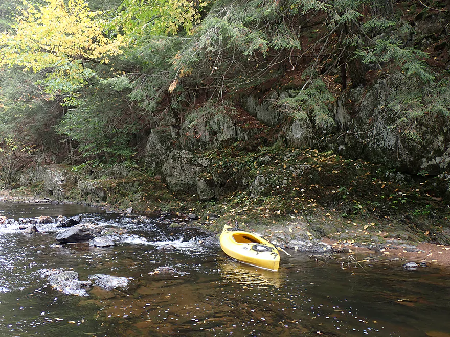 In a sense the shallow water portages were a hidden blessing, as it offered me a chance to take pictures of the extraordinary scenery here, which has rarely been photographed. Accessing the gorge by land would certainly be difficult because of private property and steep banks, so a kayak is really the best and maybe only way to see “Pine Dells”.