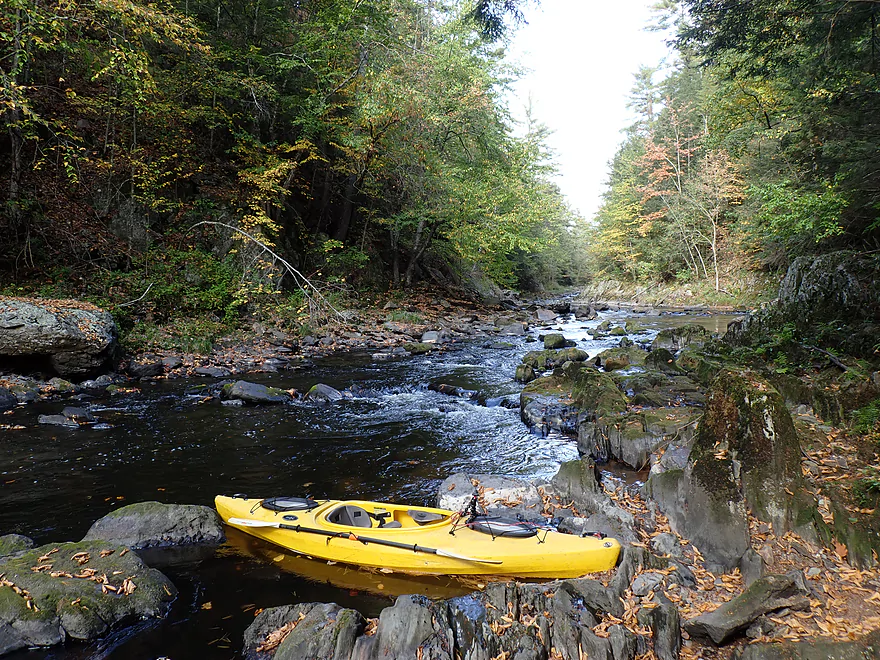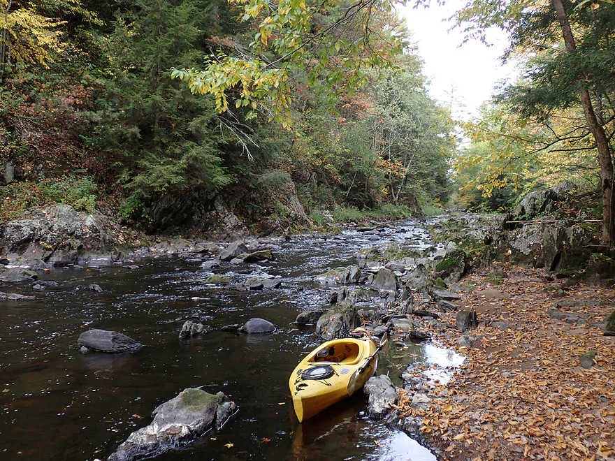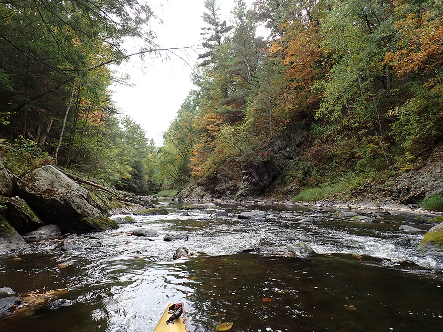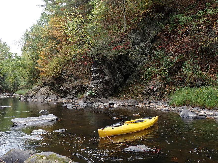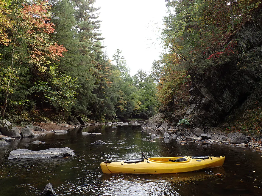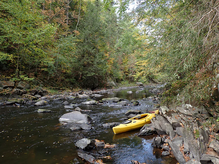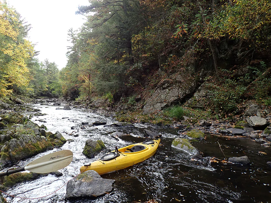 General Advisory: The gorge is deceptively more dangerous than it looks. There are few eddy breaks and the steep walls would make rescue difficult. Paddlers should have some whitewater experience/competency before doing this trip and should wear their life jackets. Paddling in a group is highly recommended. Giant waves will form in high water. The following is a quote from paddling author Rick Kark: