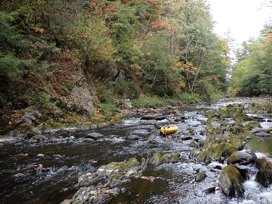 Rapids: Before the gorge there are only riffles and minor Class 1 rapids. The main feature is the half-mile long gorge/dells where there are nearly nonstop boulders and rapids. The strength of these pitches will depend greatly on water depth, but I would classify them as mostly Class 1’s and Class 2’s.