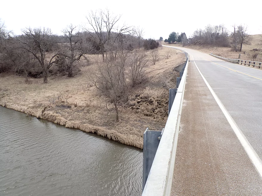 Hwy A: This was one of the worst take-outs I’ve ever used. To start the banks are a bit steep/muddy for disembarking. Then there is a barbed wire fence you have to get over. This is followed up by a very steep embankment climb with loose gravel (maybe 40 degrees) that would be difficult even without lugging a 50 pound boat. Lastly there is a 330′ guard rail I had to pull my boat past before I could access the shoulder where my car was parked.
