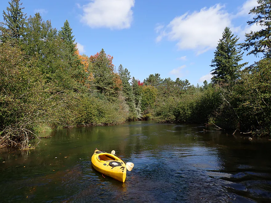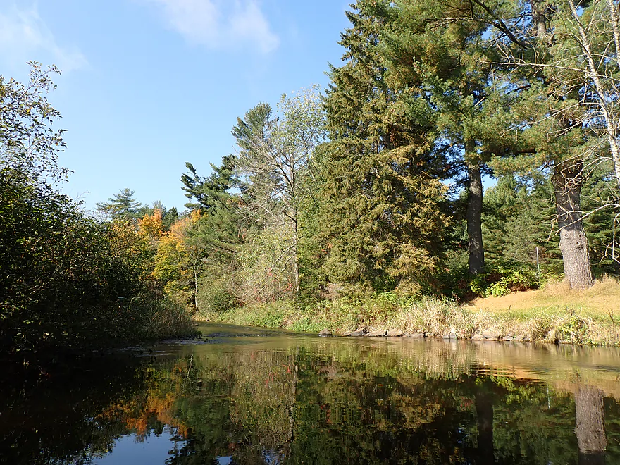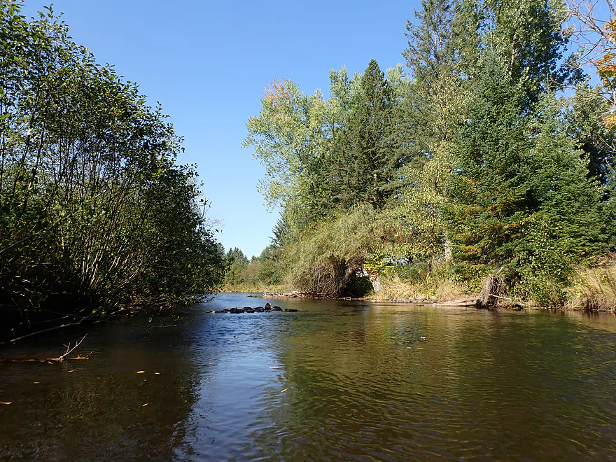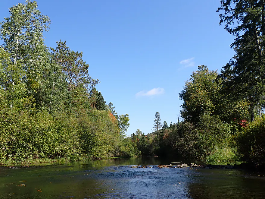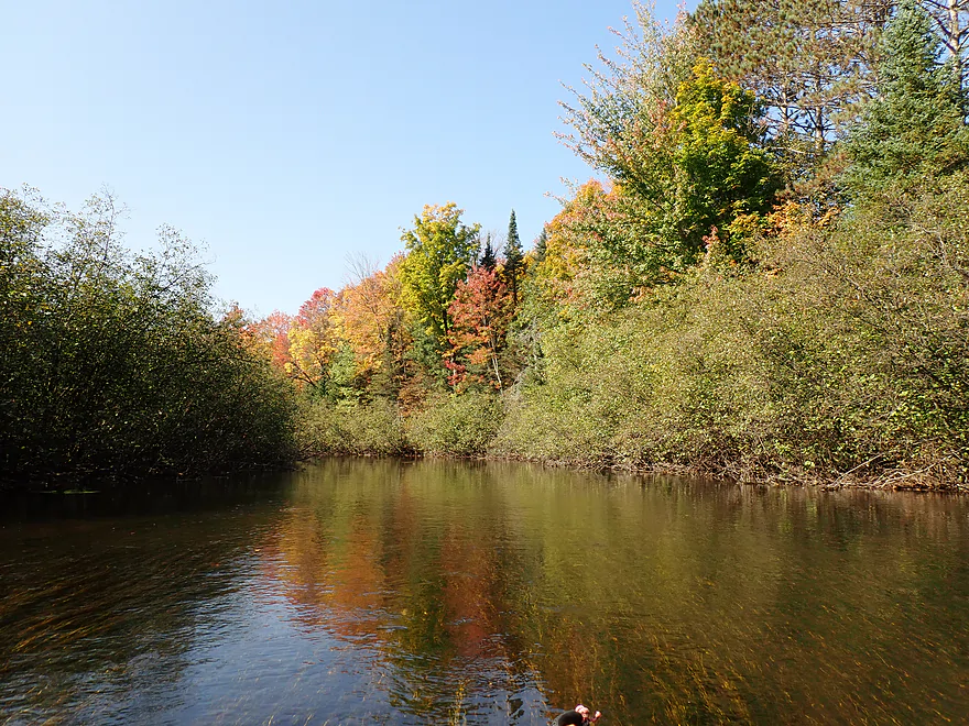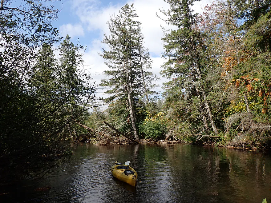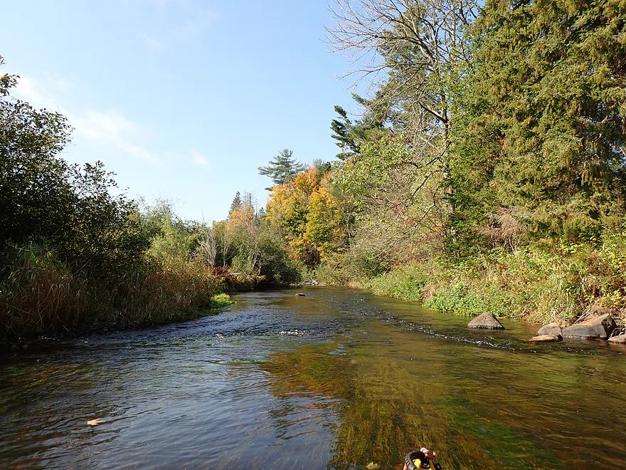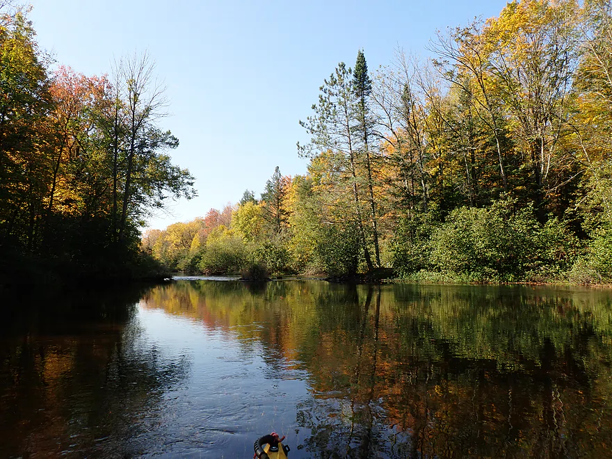 - County Road J to Heineman Road: 1.7 miles. Mix of pine and hardwoods with alders. Starts slow, but picks up speed. No major rapids.