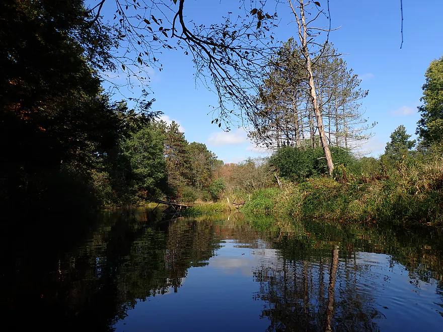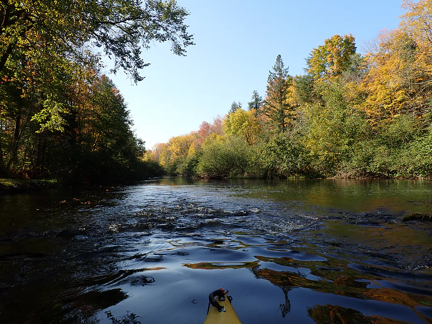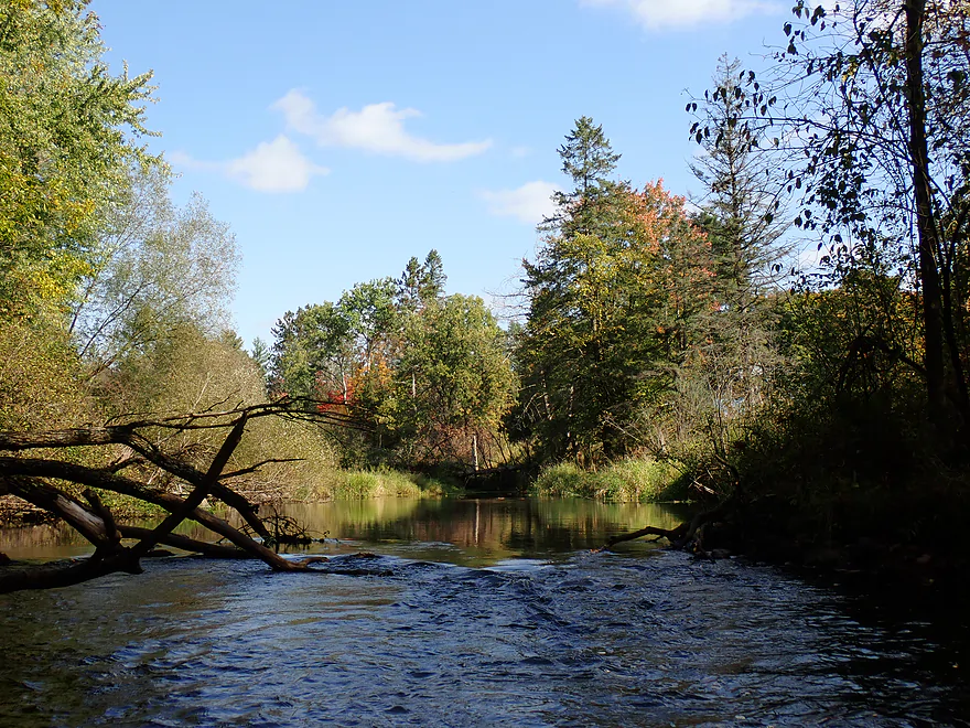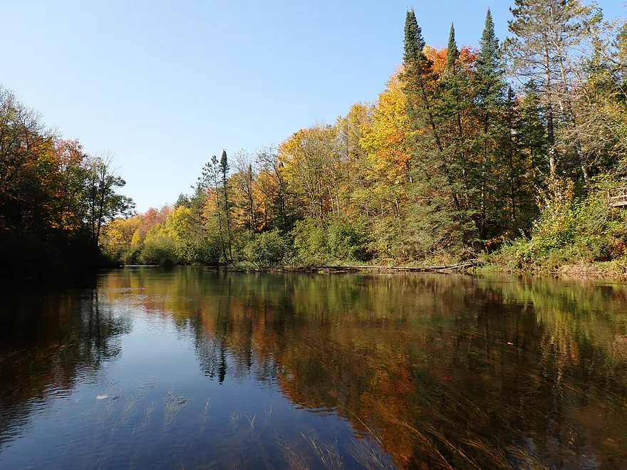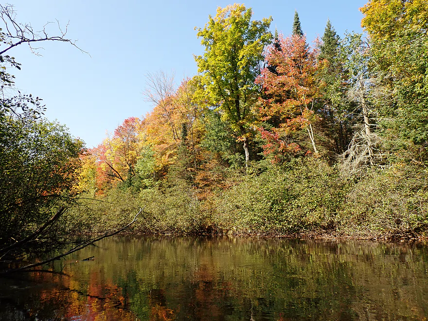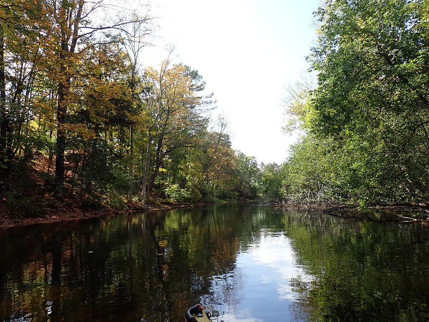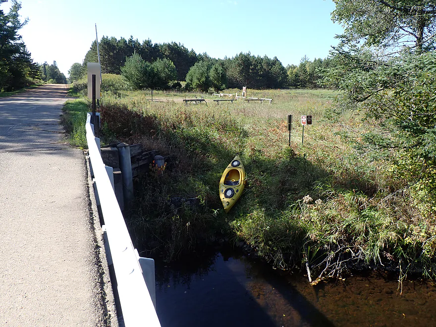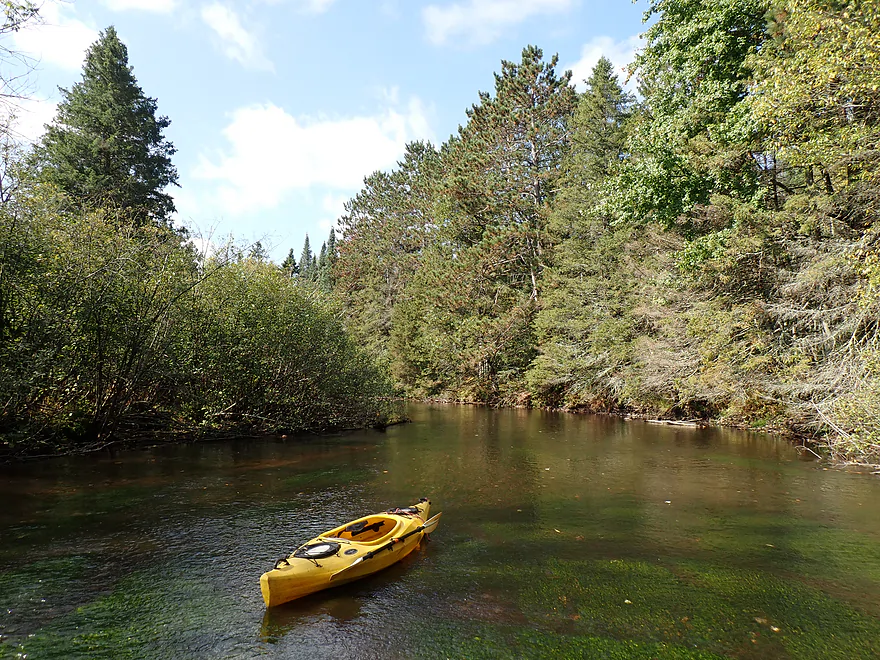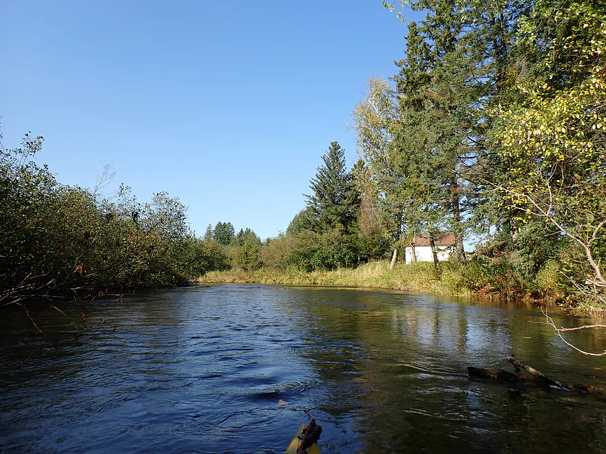 - County Road J to Heineman Road: 1.7 miles. Mix of pine and hardwoods with alders. Starts slow, but picks up speed. No major rapids.