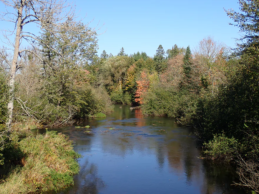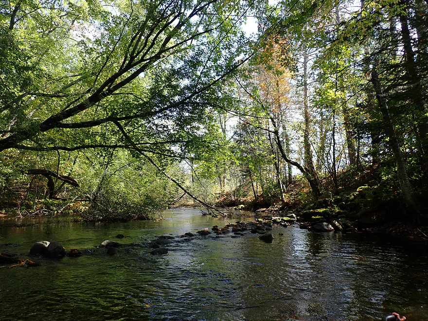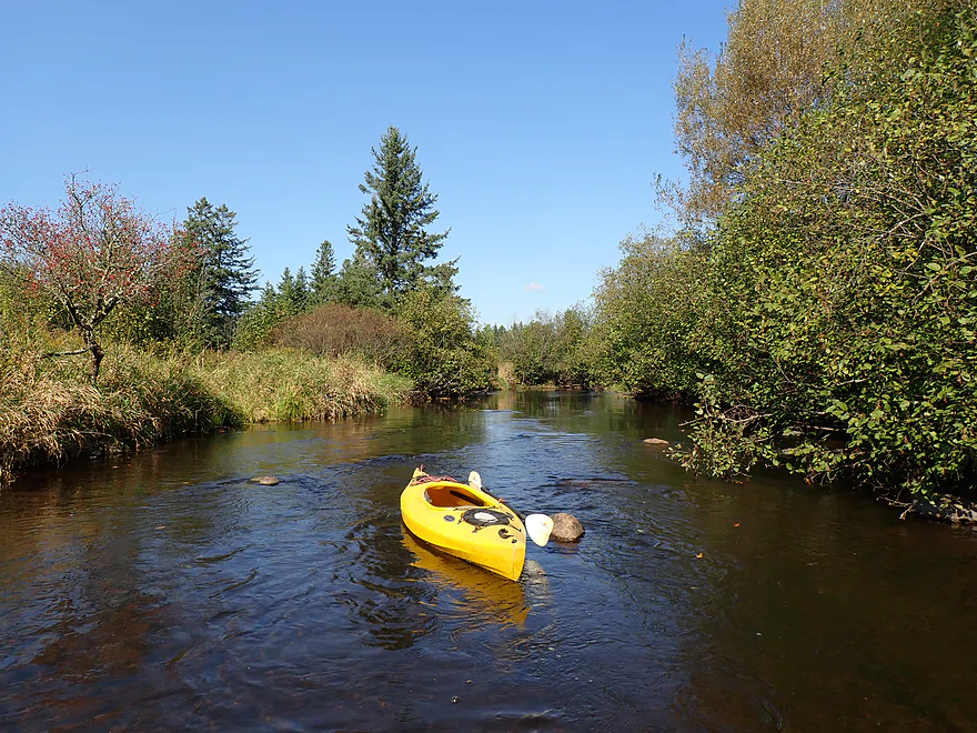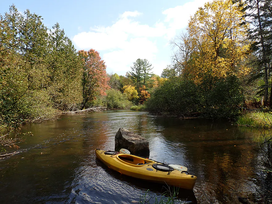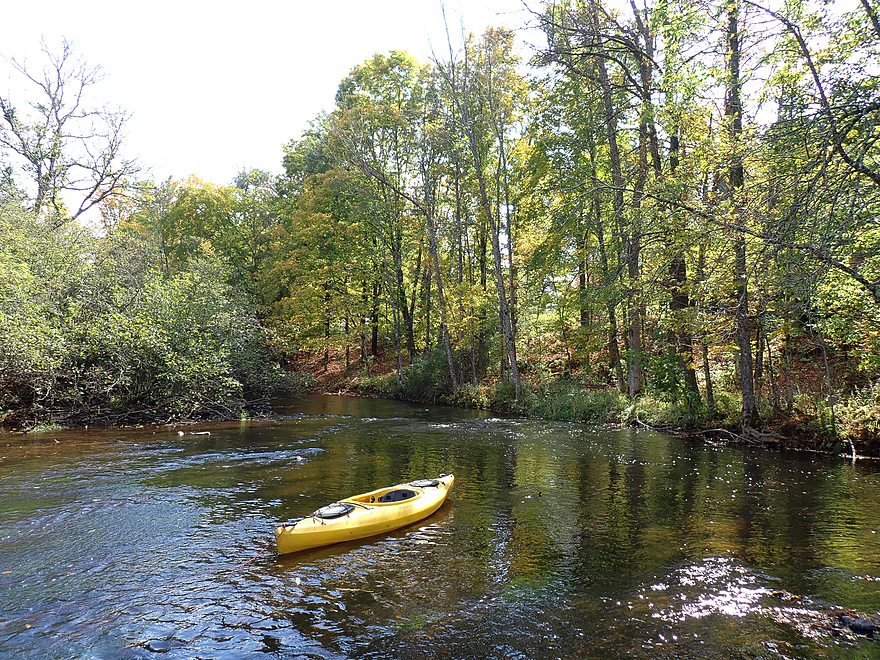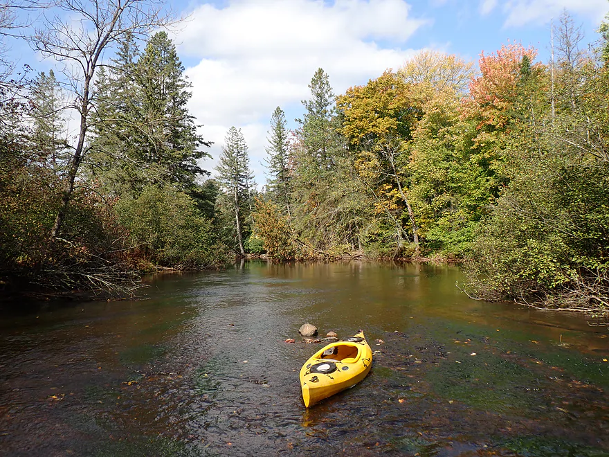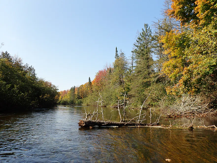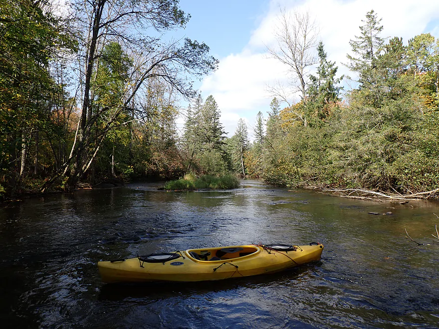 - County Road J to Heineman Road: 1.7 miles. Mix of pine and hardwoods with alders. Starts slow, but picks up speed. No major rapids.